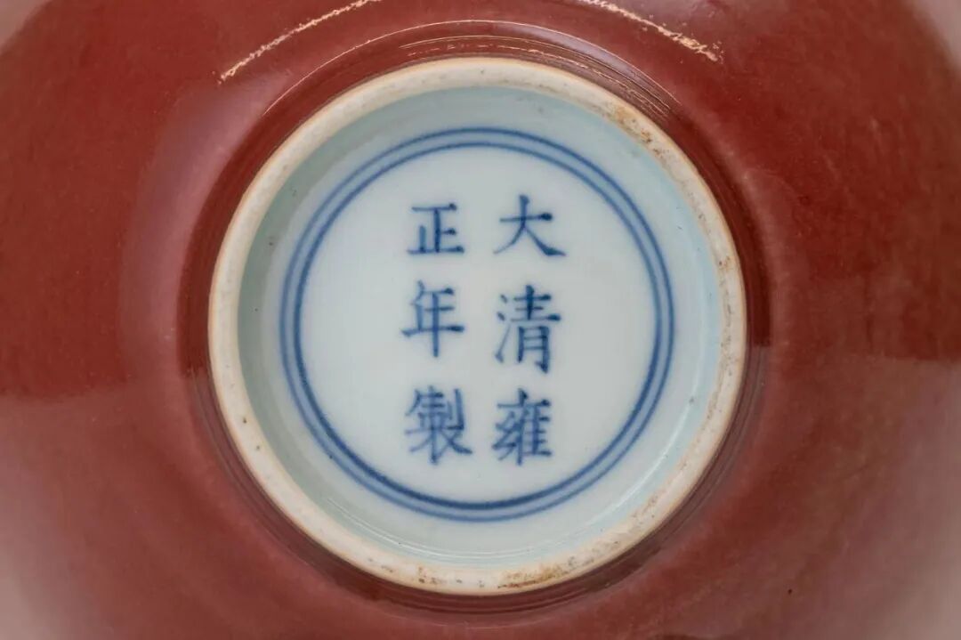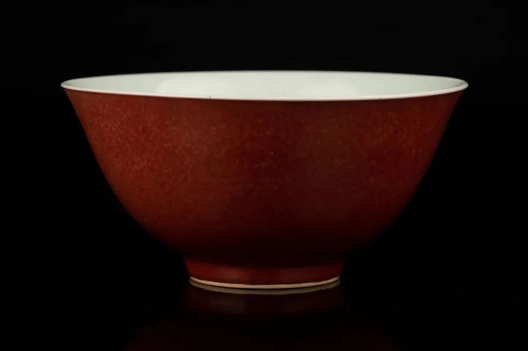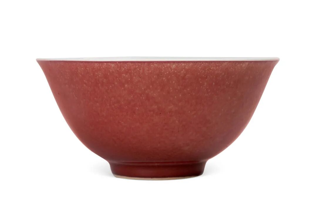 此次拍卖的清雍正豇豆红碗在御窑厂经历了康熙晚期不断的实验,在雍正时期烧造工艺已经更加完善,是成熟掌握稳定的铜红釉烧成技术之时期的代表作。碗外壁施红釉,釉厚而发亮,像海棠初放,红中还带釉轻微青绿苔点,嘴边自然露出灯草口,红白对比分明。