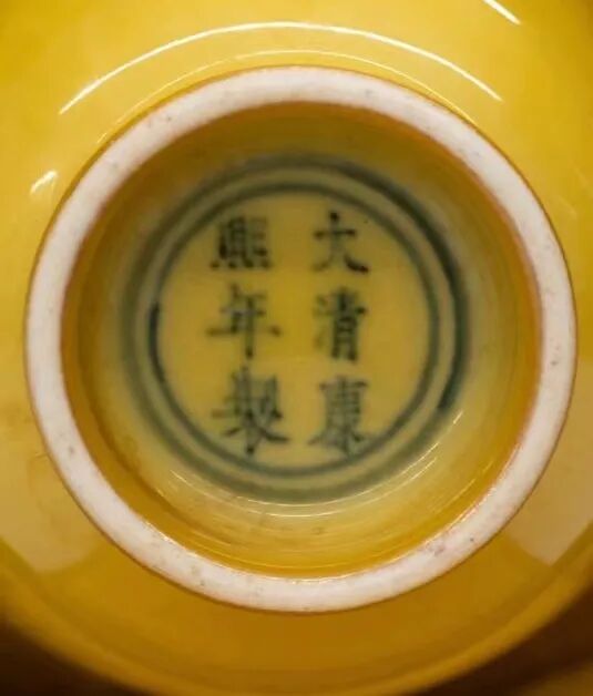清代康熙初期单色釉瓷器除了各种高温颜色釉,黄釉器物还是延用明代弘治朝所遗留下的低温黄釉工艺,低温黄釉分为两种,一种高温是在烧成的涩胎上施含铁量高的着色剂,另外是在白胎上施黄釉再低温烧制,本次拍品康熙黄釉铃铛杯即是使用此工艺,前者黄釉颜色鲜明而后者黄釉较为深沉稳重,淡黄色的釉水如一层玻璃覆盖在釉面。