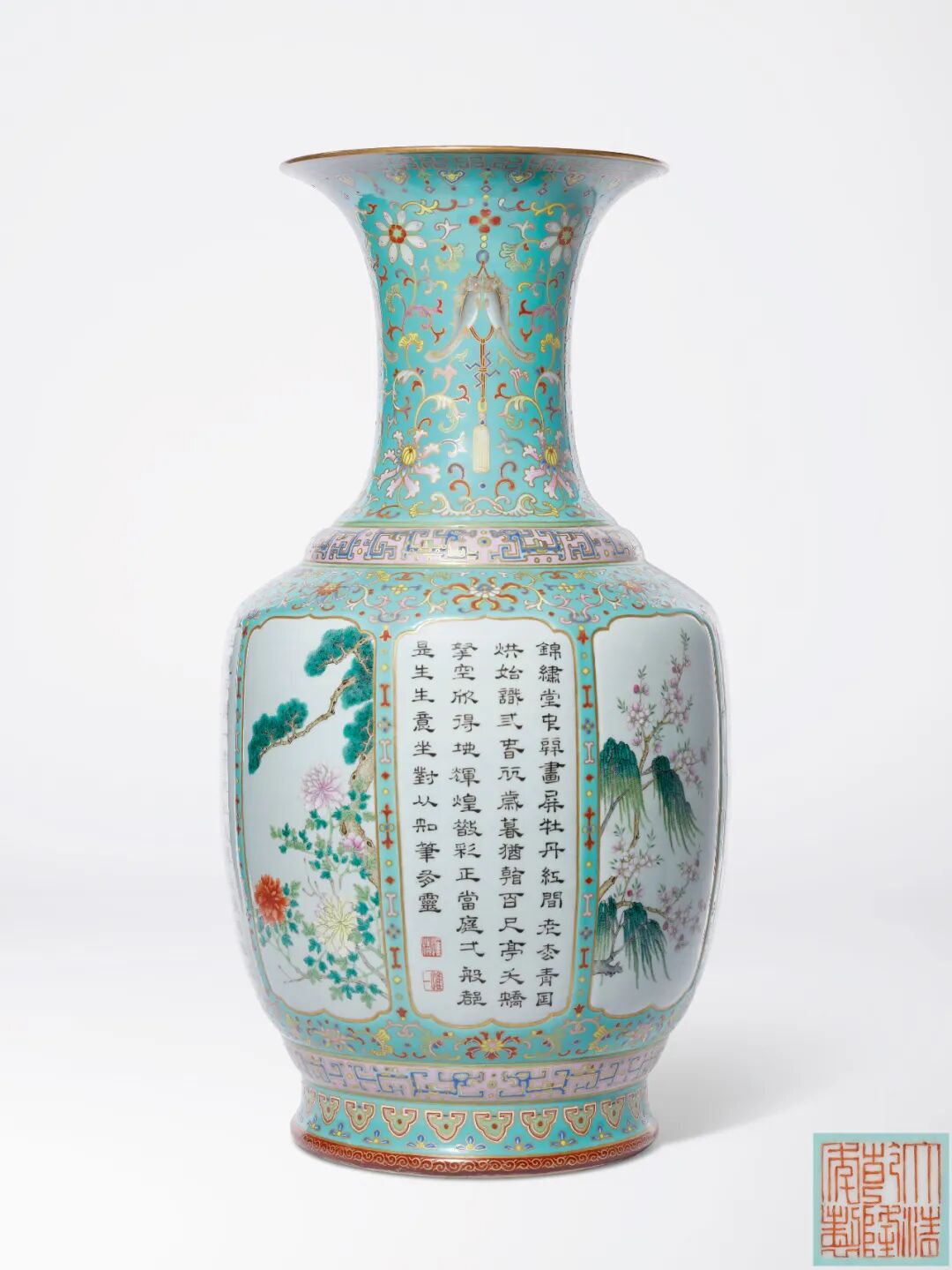 拍品估价:10,000,000 - 18,000,000 港币1.Arthur Rothwell旧藏,藏品39号3.纽约佳士得,1995年9月11日,拍品241号出版:Robert Jacobsen, 叶佩兰及朱汤生《清代康雍乾宫窑瓷器:望星楼藏瓷》,香港,2004年, 190至191页,图版71号1.S. Marchant & Son, 《Imperial Porcelain of Kangxi, Yongzheng & Qianlong》,伦敦,1996年,54至55页,图版35号Lot 2726 清乾隆 松石绿地洋彩开光御制诗四季花卉图大瓶拍品估价:8,000,000 - 12,000,000 港币来源:伦敦佳士得,1993年12月6日,拍品108号出版:Robert Jacobsen, 叶佩兰及朱汤生《清代康雍乾宫窑瓷器:望星楼藏瓷》,香港,2004年, 146至149页,图版53号展览:借展明尼阿波利斯美术馆,1999-2020年拍品估价:8,000,000 - 10,000,000 港币1.纽约Parke Bernet, 1943年9月23至25日,拍品425号3.纽约佳士得, 1995年9月21日,拍品216号出版:Robert Jacobsen, 叶佩兰及朱汤生《清代康雍乾宫窑瓷器:望星楼藏瓷》,香港,2004年, 28至29页,图版1号展览:洛杉矶郡博物馆,洛杉矶,《中国瓷器》,1952年,图版369号拍品估价:5,000,000 - 8,000,000 港币2.伦敦苏富比,1966年7月12日,拍品311号5.香港佳士得,1995年10月30日,拍品748号1.徐氏艺术馆,香港,“窑瓷 IV – 清代”1995年,图版140号2.Robert Jacobsen, 叶佩兰及朱汤生《清代康雍乾宫窑瓷器:望星楼藏瓷》,香港,2004年, 126至129页,图版45号展览:借展明尼阿波利斯美术馆, 1997-2020年Lot 2719 清乾隆 青花缠枝蕃莲纹瓜棱式贯耳瓶