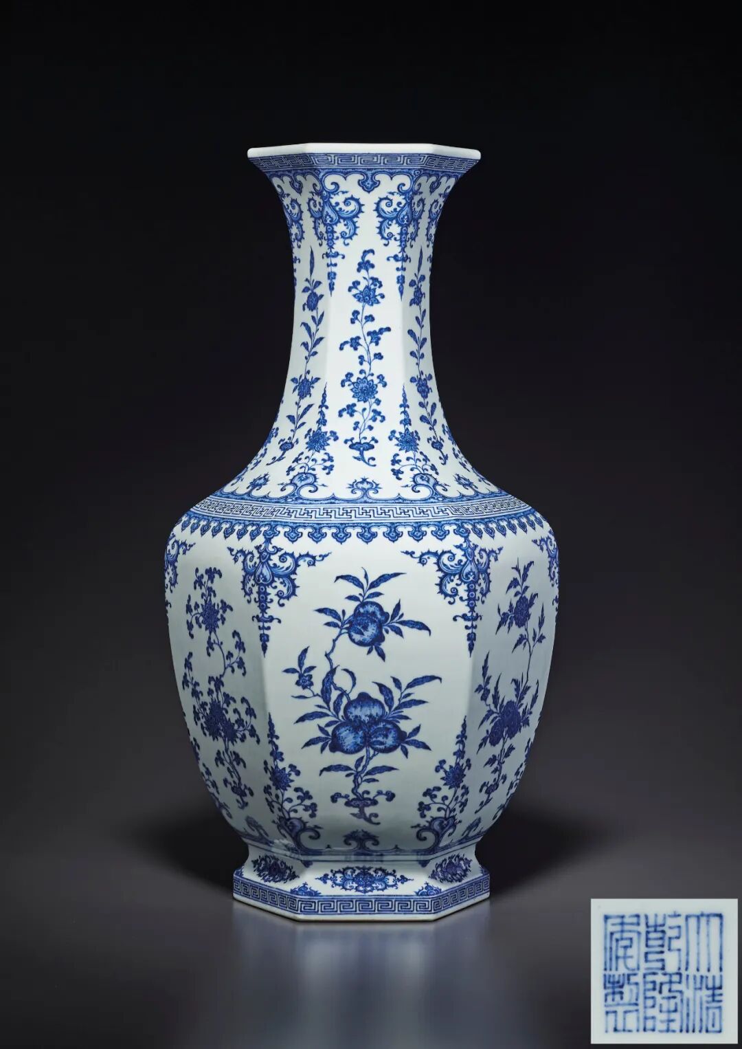 拍品估价:30,000,000 - 50,000,000 港币2.海伦·伊丽莎白·孟森·威廉斯(1824-1894), 纽约3.孟森-威廉斯-普罗克特艺术学院,由提卡,纽约,编号PC. 611瓶口微撇,长颈,鼓腹。通体绘以斗彩描金纹饰。器腹绘四朵缠枝勾莲纹,与如意云头纹相互缠绕,间以描金万字纹,颈部两侧各饰一朵番莲纹,花心绘以描金寿字纹,下悬灵芝纹,间以矾红金彩螭龙耳。颈口、颈底饰细巧如意云头纹。颈下饰一圈云蝠纹。近底处及足墙上各绘以一圈不同式样的莲瓣纹。底部书青花「大清乾隆年制」六字篆书款。此瓶不仅体量硕大,做工妙至毫巅,出处亦翔实可征。1883年6月9日,韦泽华夫人( J. Watson Williams,原名Helen Elizabeth Munson,1824-94年) 在纽约麦迪逊广场位于东二十三街南六号的美国艺廊(American Art Galleries)购藏此瓶。根据1888年3月3日的库藏记录,此瓶连底座原陈设于韦夫人起居室内,相关描述与一帧现存照片符合。拍品估价:12,000,000 - 18,000,000 港币1.拍卖于香港佳士得,1992年9月29日,拍品896号2.A & J Speelman Ltd. Oriental Art,伦敦,1998年4月1日拍品估价:8,000,000 - 12,000,000 港币出版:《中国历代陶瓷选集》,鸿禧美术馆,台北,1990年,页182-183,图版72号Lot 2877 清乾隆 青花三多折枝花果纹六方尊拍品估价:7,000,000 - 9,000,000 港币4.香港苏富比,2011年10月5日,拍品1920号出版:《香港苏富比二十周年 (1973-1993)》,香港,1993年,148页,图版166拍品估价:5,000,000 - 8,000,000 港币1.由现任藏家于1990年代购自苏黎世 Berti Aschmann(传)2.哈佛大学艺术博物馆亚洲部荣誉主任暨佳士得高级顾问备注:Berti Aschmann 女士是一位常驻于苏黎世的著名佛教艺术藏家及学者。她将其珍藏赠予苏黎世 Rietberg 博物馆后,自1995年起,即成为该馆东南亚艺术及中国佛教艺术的核心馆藏。Lot 2889 西藏 十八世纪 局部鎏金铜大威德金刚像