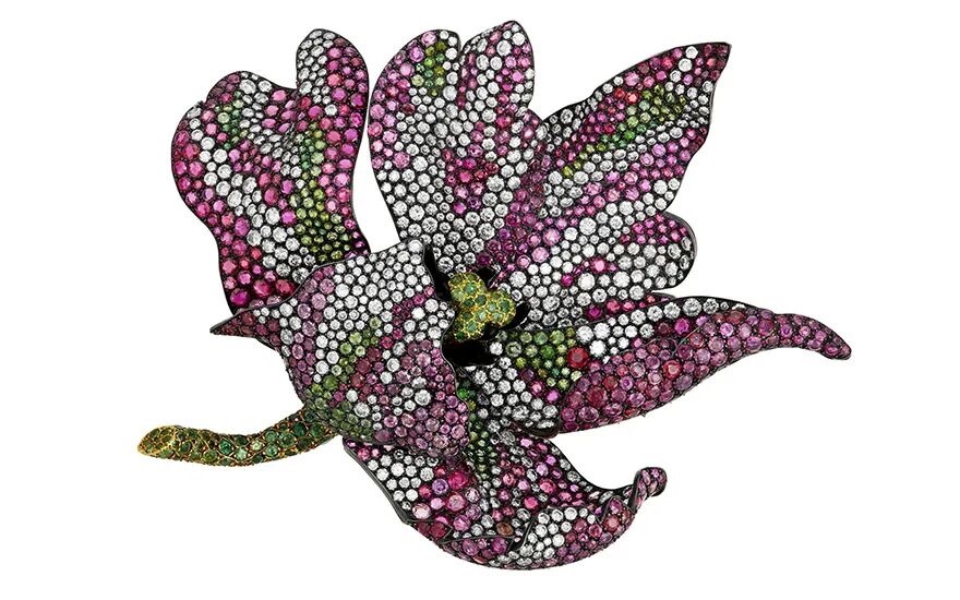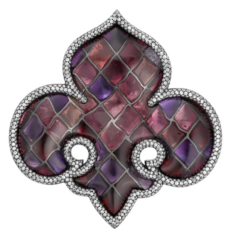 多种宝石和钻石 “Vitrail Fleur-de-Lys” 胸针