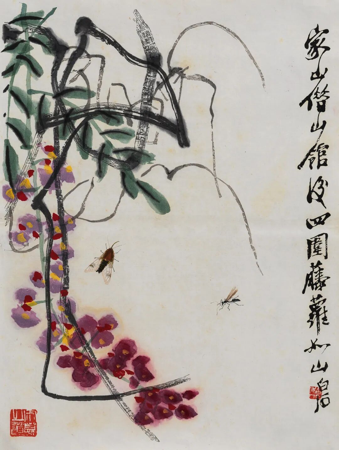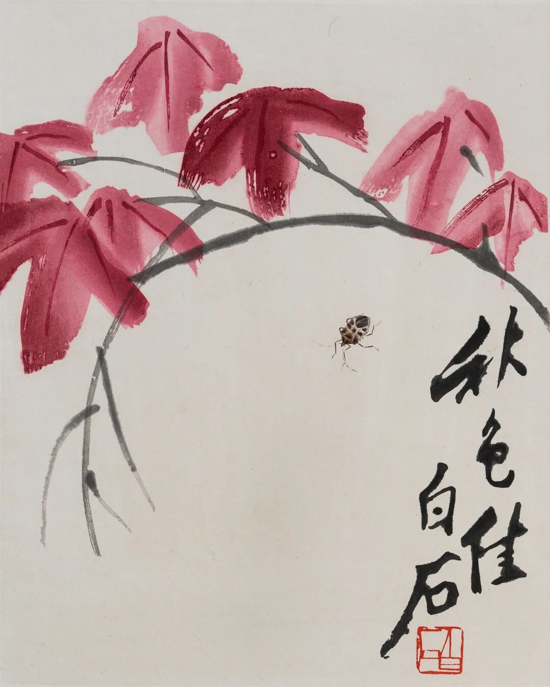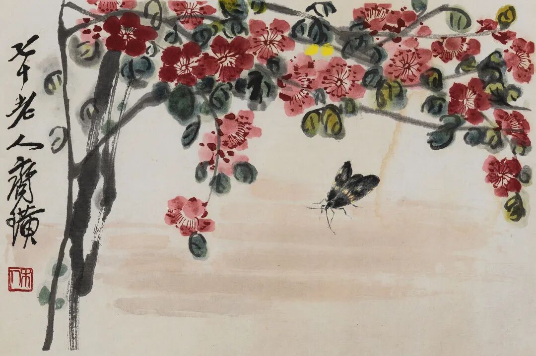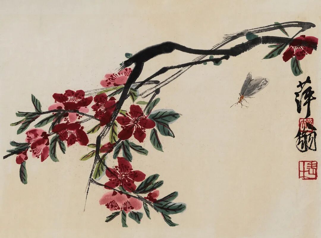 荣宝斋木版水印 齐白石 海棠飞蛾