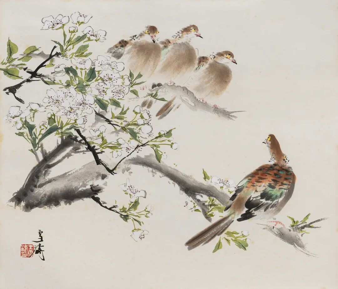 荣宝斋木版水印 王雪涛 梨花斑鸠
