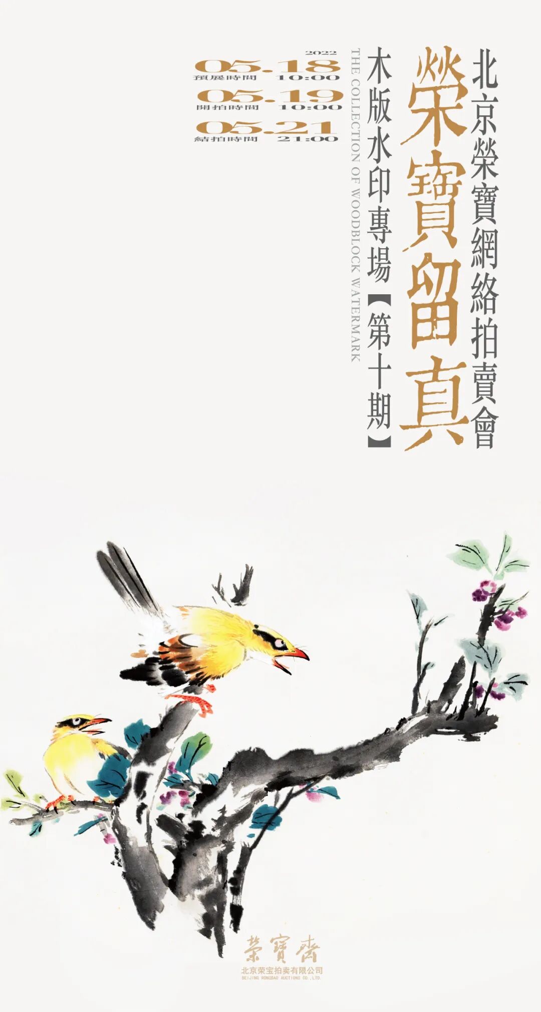 北京荣宝——荣宝留真·木版水印专场网络拍卖会(第十期)将于5月19日10:00-5月20日10:00开启线上预展,并于5月20日10:00开拍,5月22日21:00结拍。