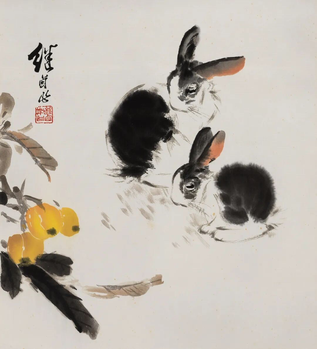 荣宝斋木版水印 刘继卣 枇杷双兔