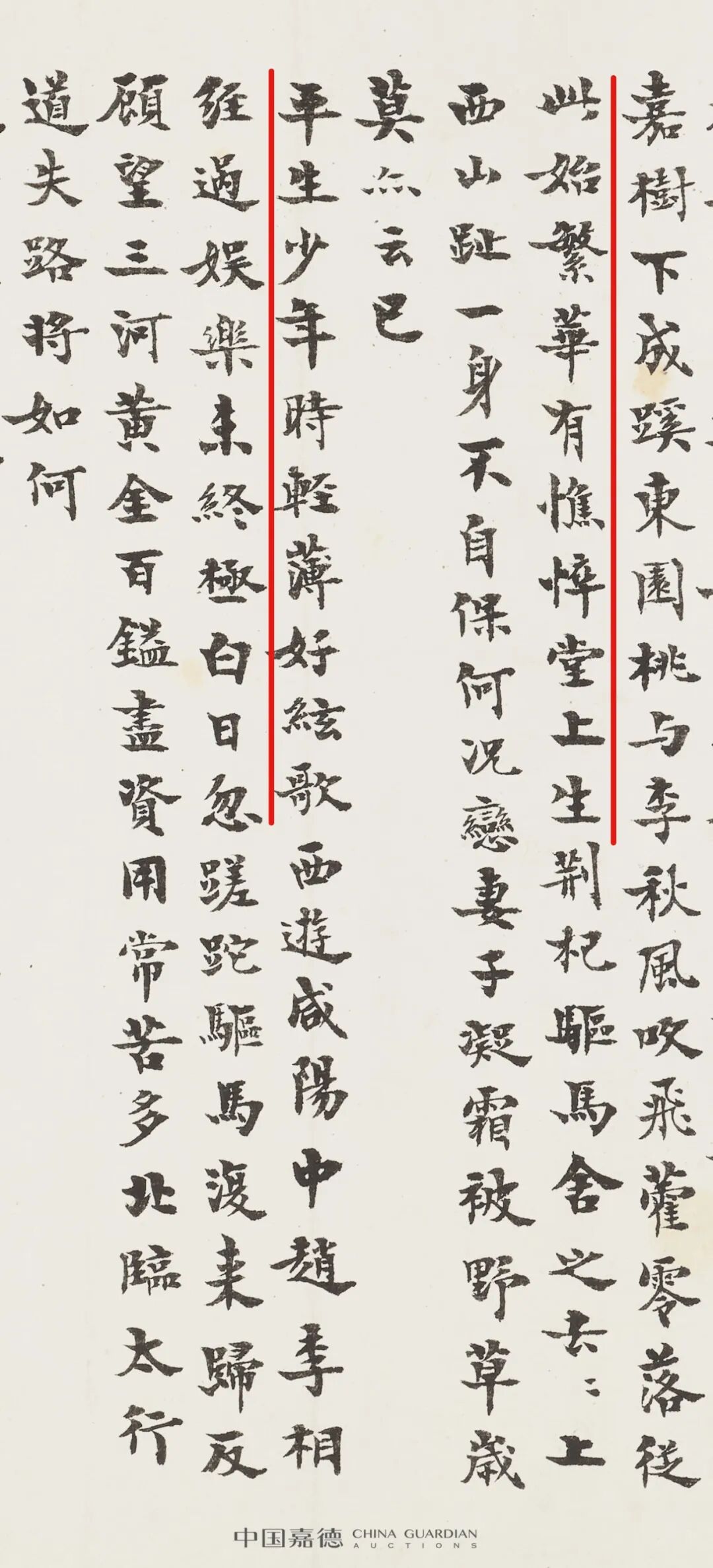 释文:嘉树下成蹊,东园桃与李。秋风吹飞藿,零落从此始。繁华有憔悴,堂上生荆杞。驱马舍之去,去上西山趾。一身不自保,何况恋妻子。凝霜被野草,岁暮亦云已。平生少年时,轻薄好弦歌。西游咸阳中,赵李相经过。娱乐未终极,白日忽蹉跎。驱马复来归,反顾望三河。黄金百镒尽,资用常苦多。北临太行道,失路将如何。