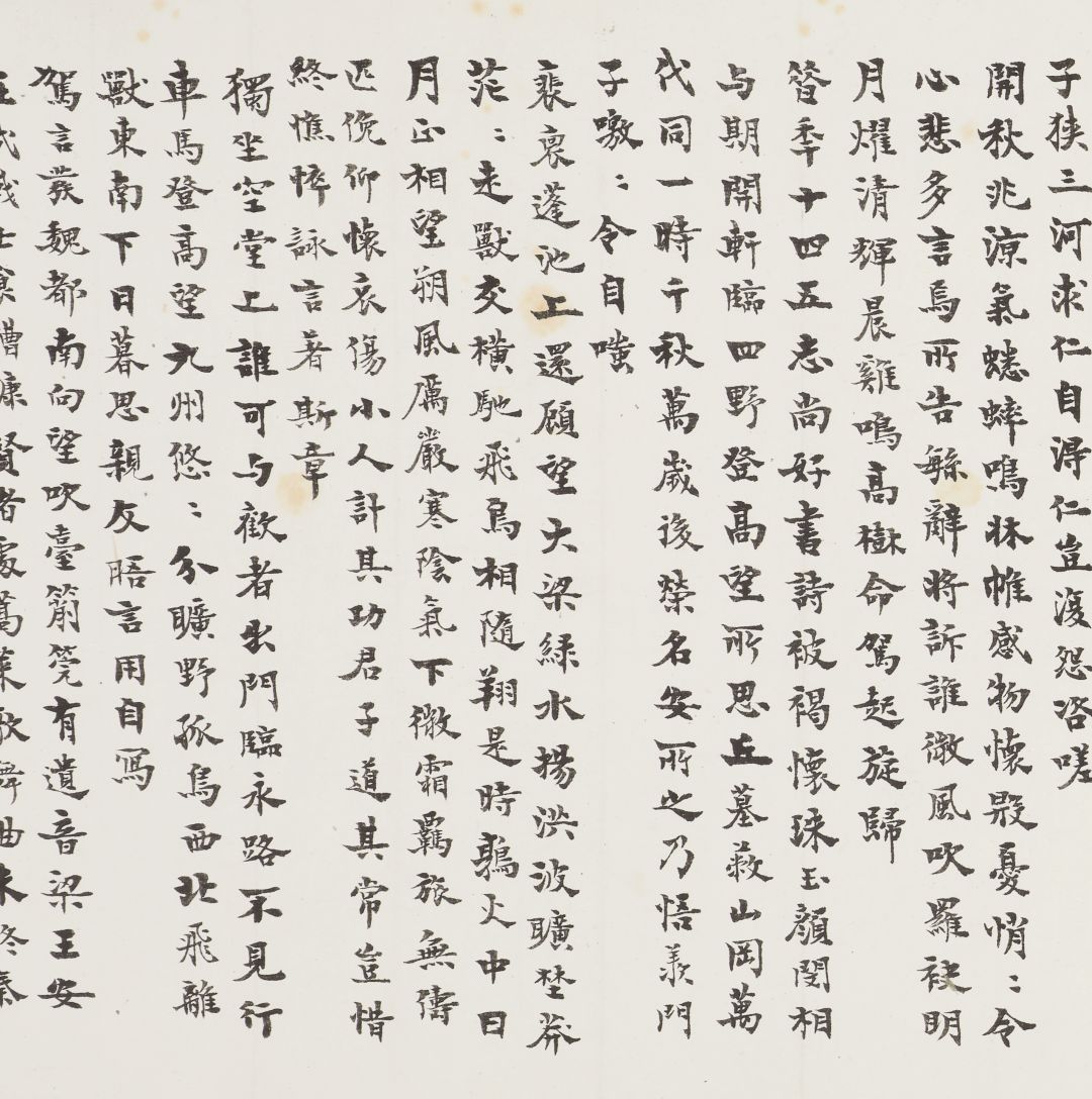 释文:登高临四野,北望青山阿。松柏翳冈岑,飞鸟鸣相过。感慨怀酸辛,怨毒常苦多。李公悲东门,苏子狭三河。求仁自得仁,岂复怨咨嗟。开秋兆凉气,蟋蟀鸣床帷。感物怀殷忧,悄悄令心悲。多言焉所告,繁辞将诉谁。微风吹罗袂,明月耀清晖。晨鸡鸣高树,命驾起旋归。昔年十四五,志尚好诗书。被褐怀珠玉,颜闵相与期。开轩临四野,登高望所思。丘墓蔽山冈,万代同一时。千秋万岁后,荣名安所之。乃悟羡门子,噭噭令自嗤。
