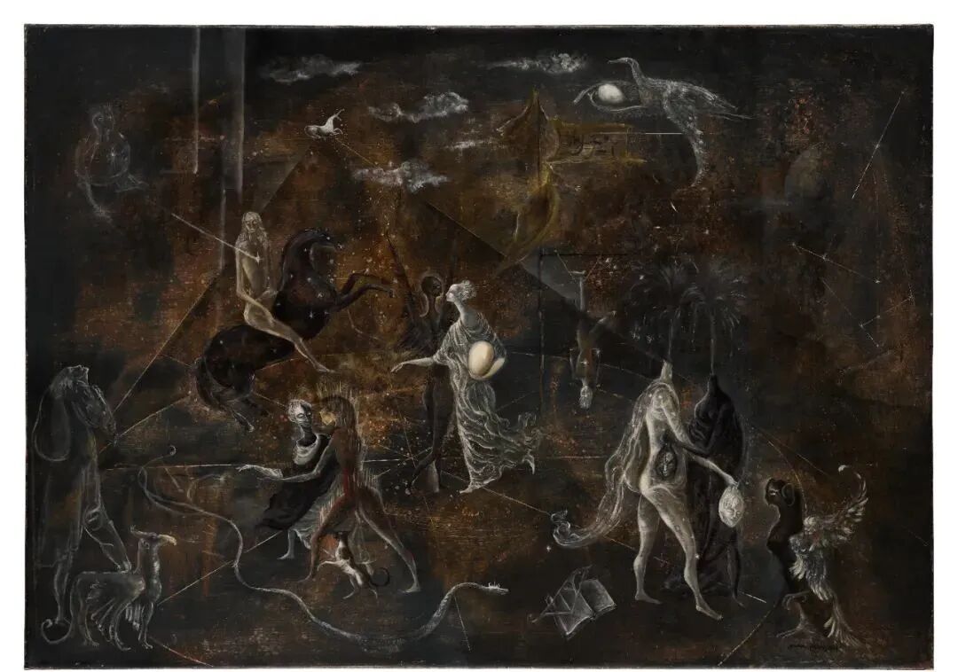 蛋彩画板,约1950年作,57.2 x 78.4 公分