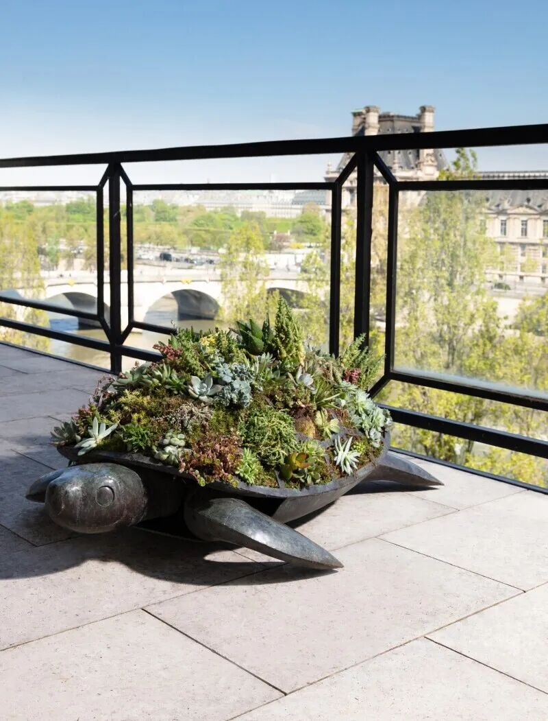 设计精巧的犀牛造型酒水柜、可爱柔软的绵羊凳子、大银杏叶子造型的扶手椅、乌龟造型的花坛以及鸽子台灯、青蛙扶手椅等等,创造出一个带有莱兰特色的童话世界。