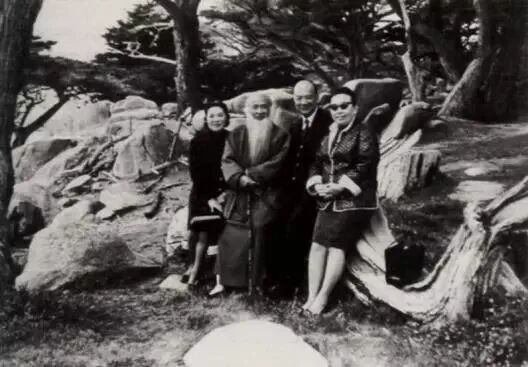 1970年,高岭梅、詹云白伉俪与张大千合摄于美国加州卡米尔,(左至右:徐雯波夫人、张大千先生、高领梅先生及詹云白夫人)