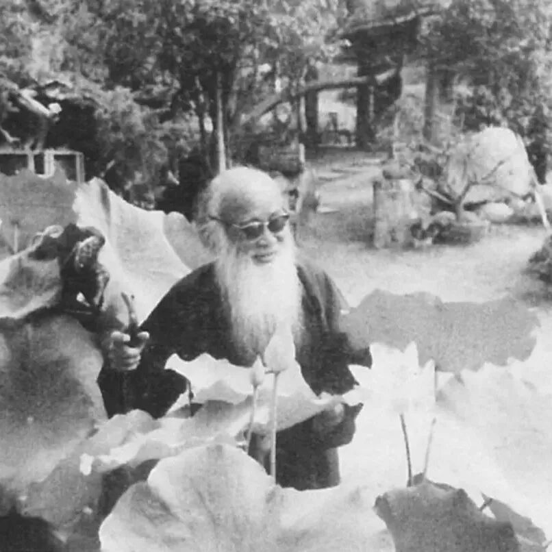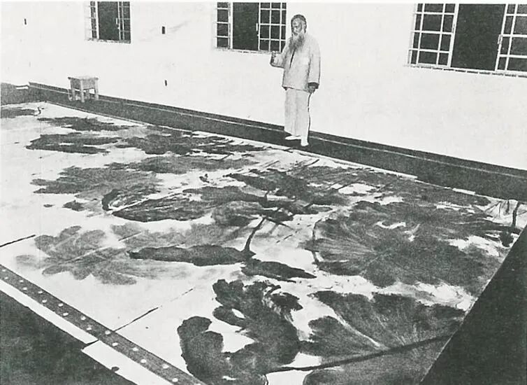 张大千于八德园画泼墨荷花通景屏
