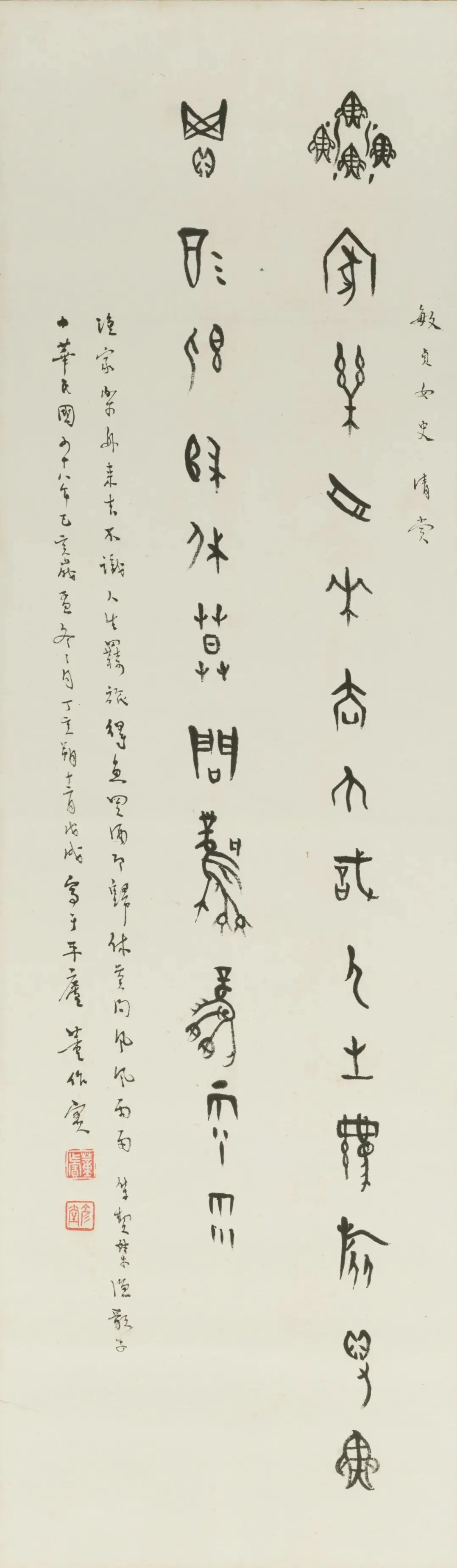 戈敏贞女士于甲骨文似情有独钟,所藏以董作宾写赠居其四,其中〈甲骨文渔歌子〉(拍品编号603)具其上款。