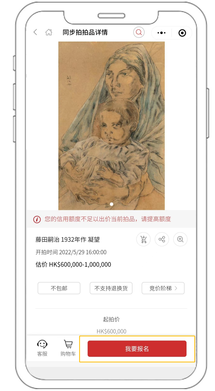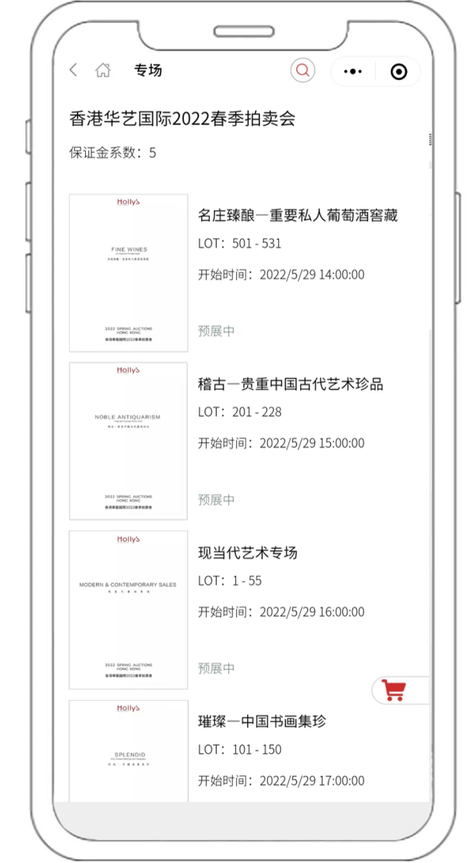 参与实时网络竞投者,请于拍卖日二十四小时前登入华艺在线APP或华艺淘珍微信小程序,完成账号注册,实名认证并交纳保证金。