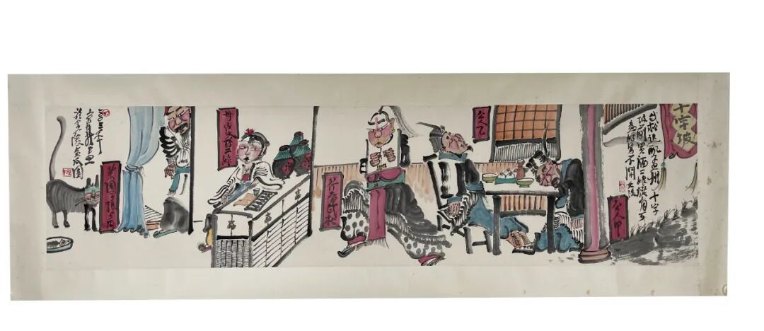 识文:洪世清善熊猫,人物如此酣畅,罕见也。醒盦陆抑非以缶庐诗为题。