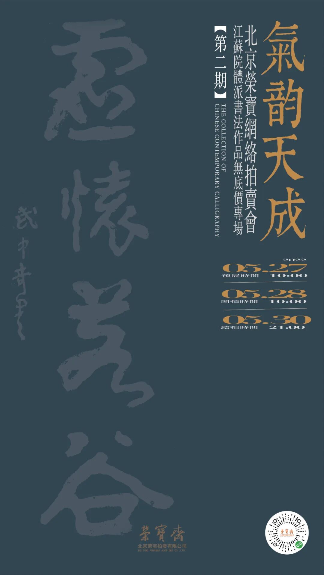 北京荣宝——气韵天成·江苏院体派书法作品无底价专场网络拍卖会(第二期)将于5月27日10:00—5月28日10:00开启线上预展,并于5月28日10:00开拍,5月30日21:00结拍。