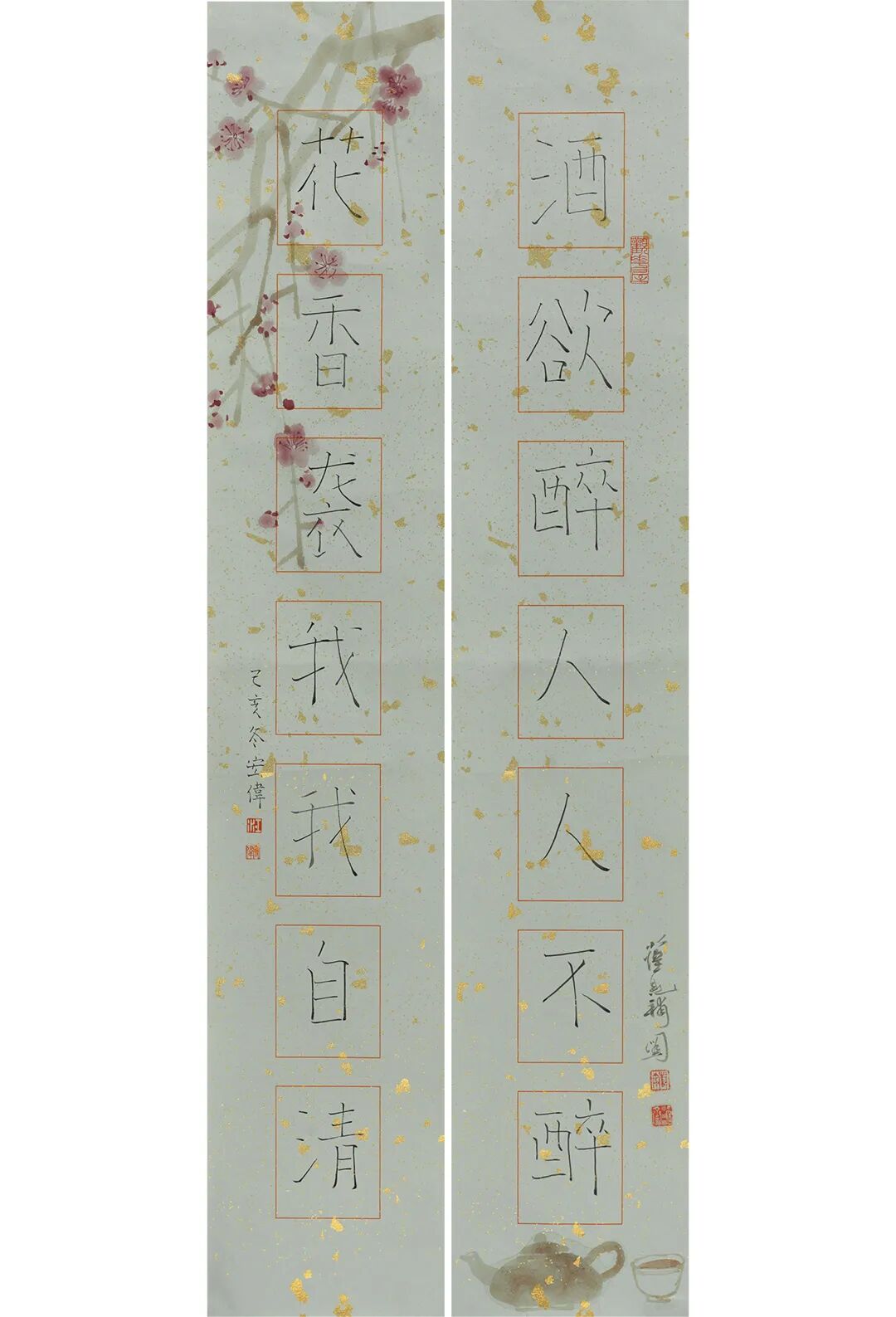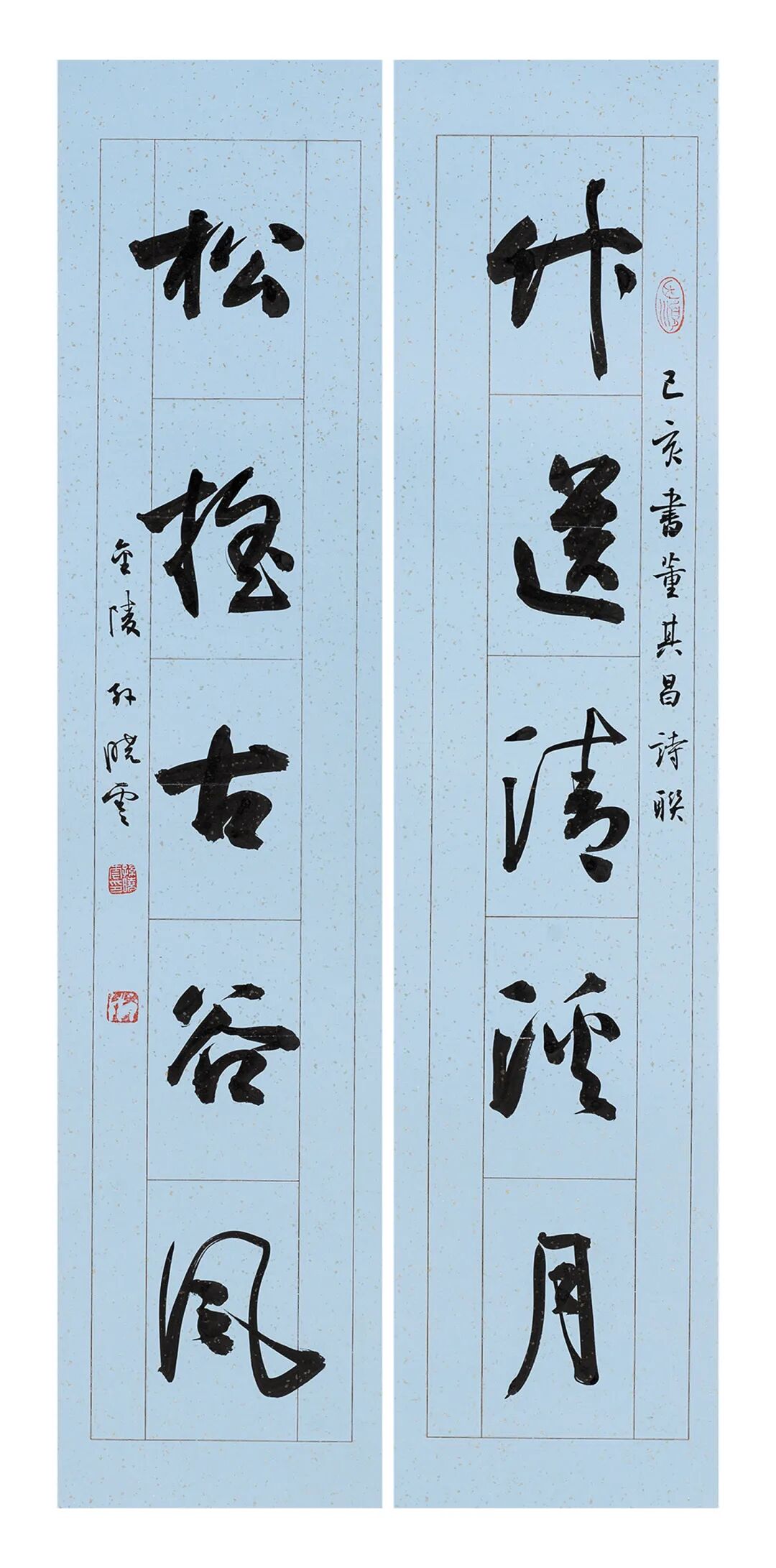 江宏伟、薛亮 楷书修身七言联(江宏伟)、画景(薛亮)