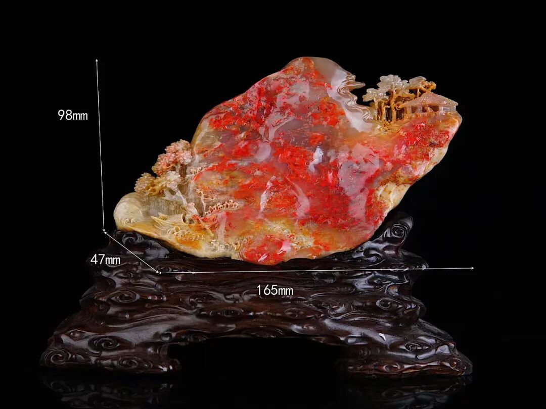 寿山双彩芙蓉薄意《喜上眉梢》摆件