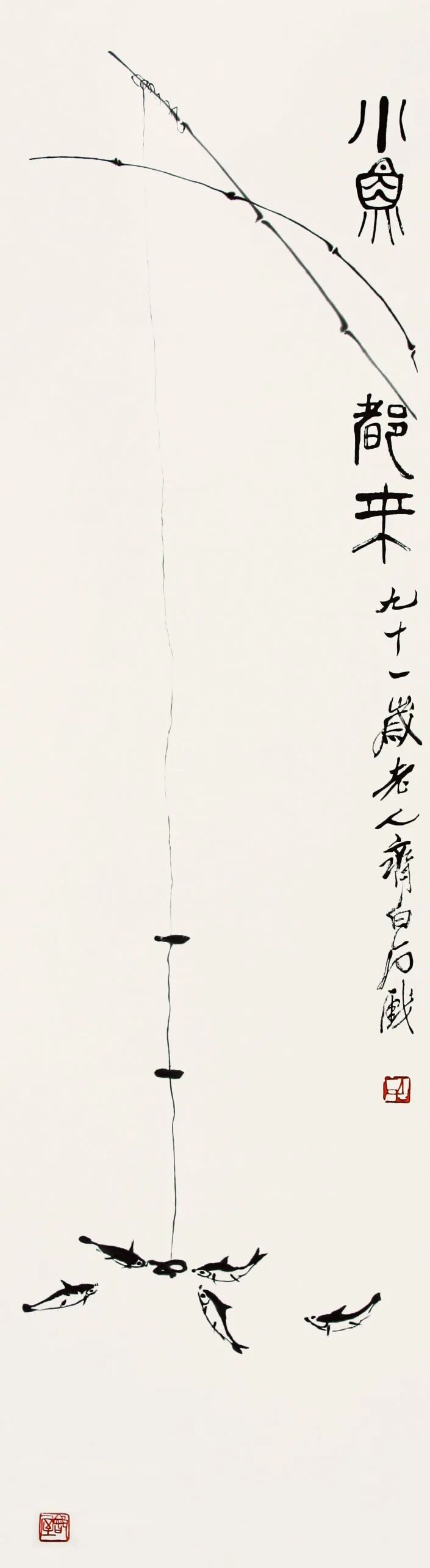 木版水印复制齐白石的虾和螃蟹难度很大。白石老人的虾用的都是很淡的墨,有立体感,但是,复制出来还要有质感呀!白石老人的虾是透明的,虾头里还有虾籽呢!怎样能把白石老人的虾印成透明的感觉,它的夹子也不是硬邦邦的棍呀!它是管状的。白石老人能画出来的效果,木版水印能不能出来这个效果,这也是个难题。还有虾须也是有生命的,柔中有刚,虾的动态全靠须子来表现。我们解决不了画水的问题,在白石老人画的鱼虾里解决了,他不画水,可是水出来了。就像仙女飞天没有希腊绘画里的翅膀,靠飘带飞的比带翅膀的飞得好得多,毕加索看了都非常赞叹。齐白石画的工笔蝈蝈须,师傅们两刀就刻出来了。刻出来了,能印出来吗?如果把一张宣纸放在刷了淡墨的版上,用耙子一砑,那就看出版痕来了,而且,出来的效果不是蝈蝈须,是钢丝。但这些都难不住老师傅们:木版刷上墨,宣纸一搭,不能用耙子,用手掌快速一抹,一看正合适。