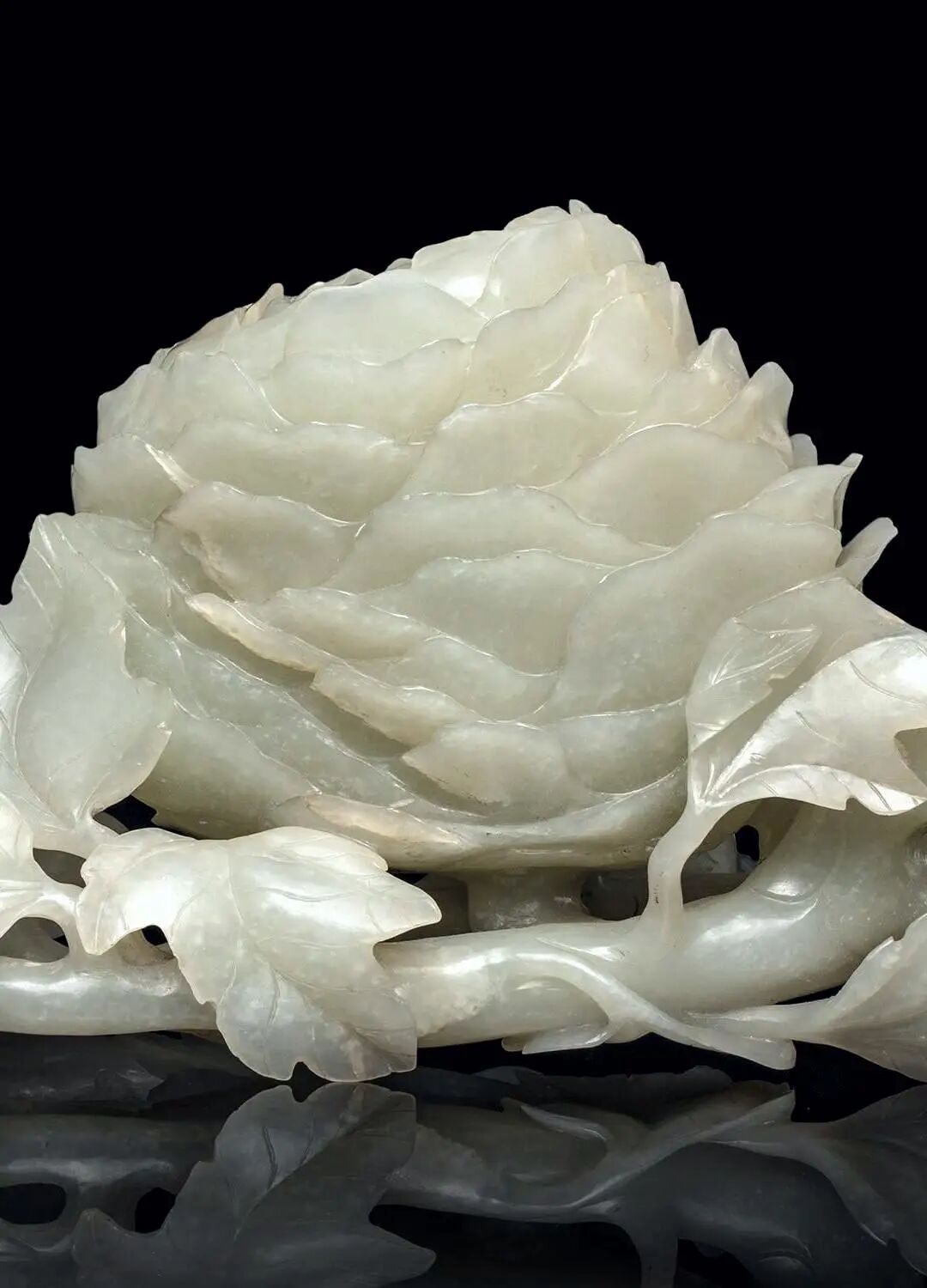 整个作品质地致密温润,局部有皮。随形设计,立体圆雕,仿生造型。随形设计,仿生造型,匠师将一块籽料琢成两朵绽放的月季花造型,内挖中空,抛光光润,形成洗池,而洗底和外壁口沿均刻意求真,其茎脉惟妙惟肖,同时采用透雕镂空技法琢出枝杆和花朵花蕾。整个作品清雅淡丽,颇具立体感,所雕纹饰对称,皆由高低不一的浮雕手法雕刻而成,层次分明,花纹绚丽,如盛开的繁花一般美得动人心弦。古今文人历来重视和挚爱文房用具。中国的文房除了最初的“笔墨纸砚”四宝外,还衍生出诸多附属,水洗就是其中之一。供置于书斋案几之上,与砚田相伴,与文人相对,意趣盎然,令人爱不释手。