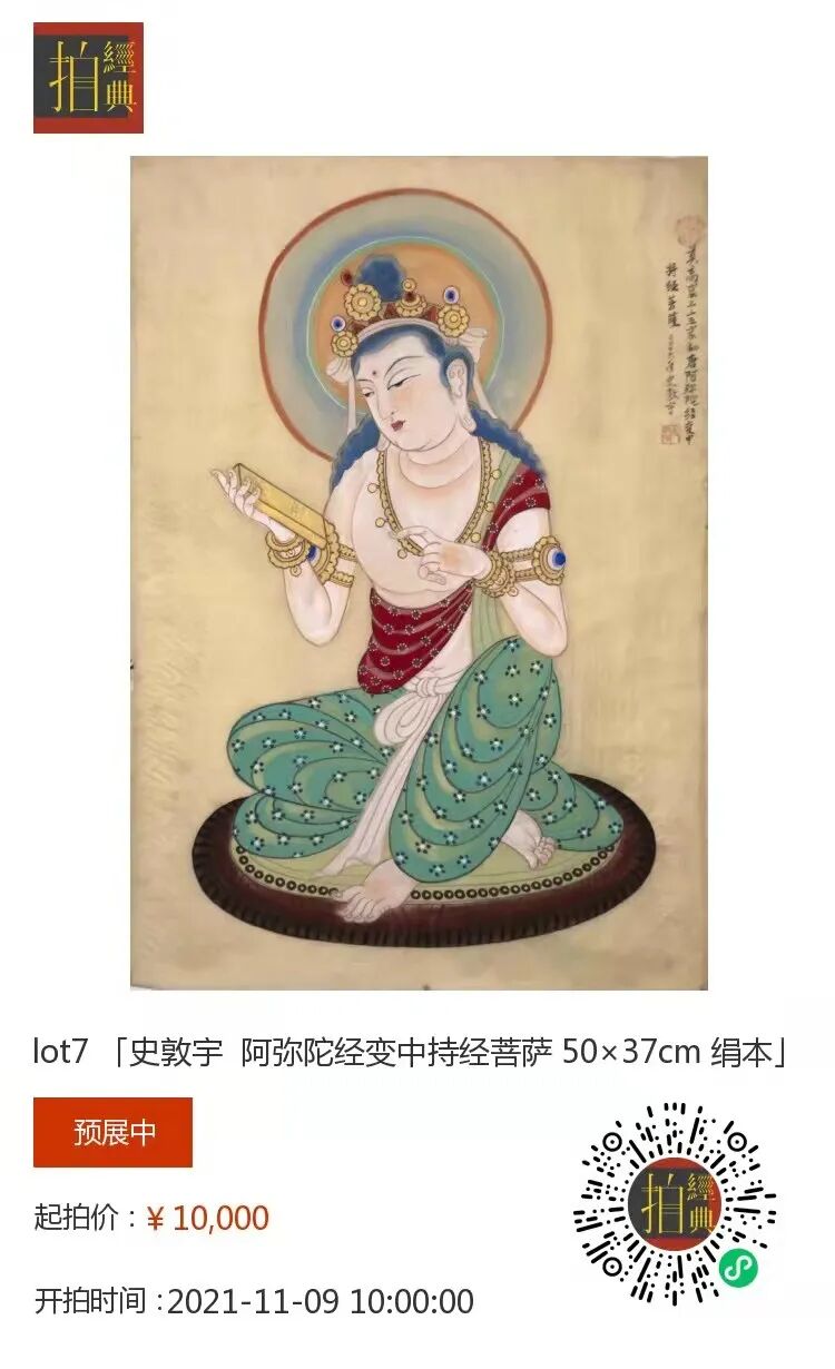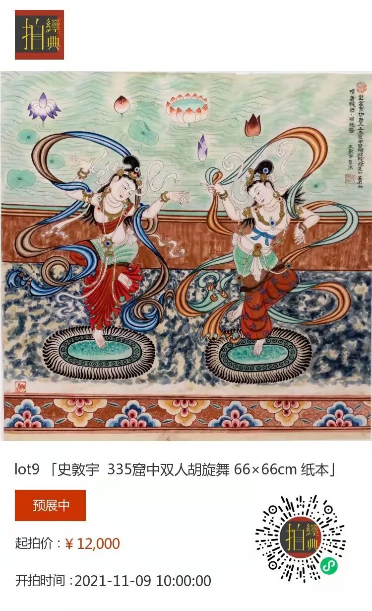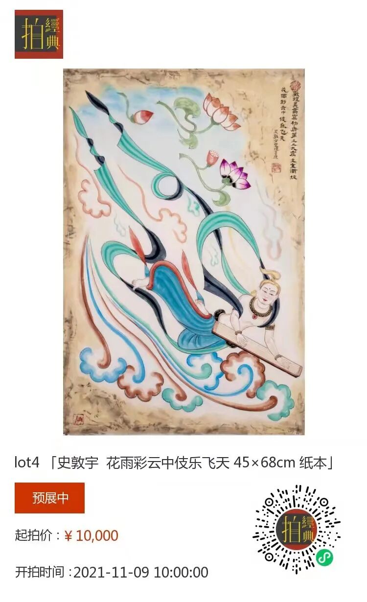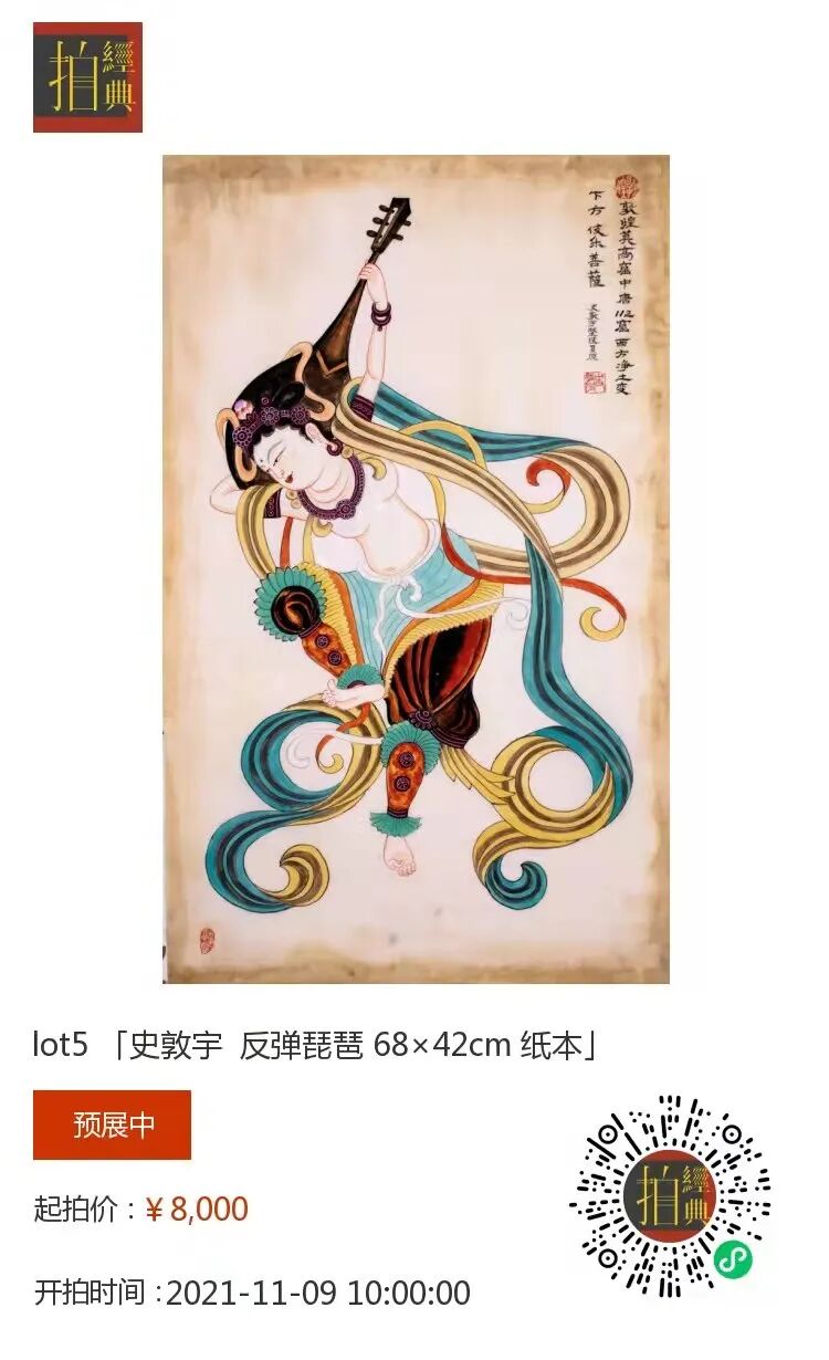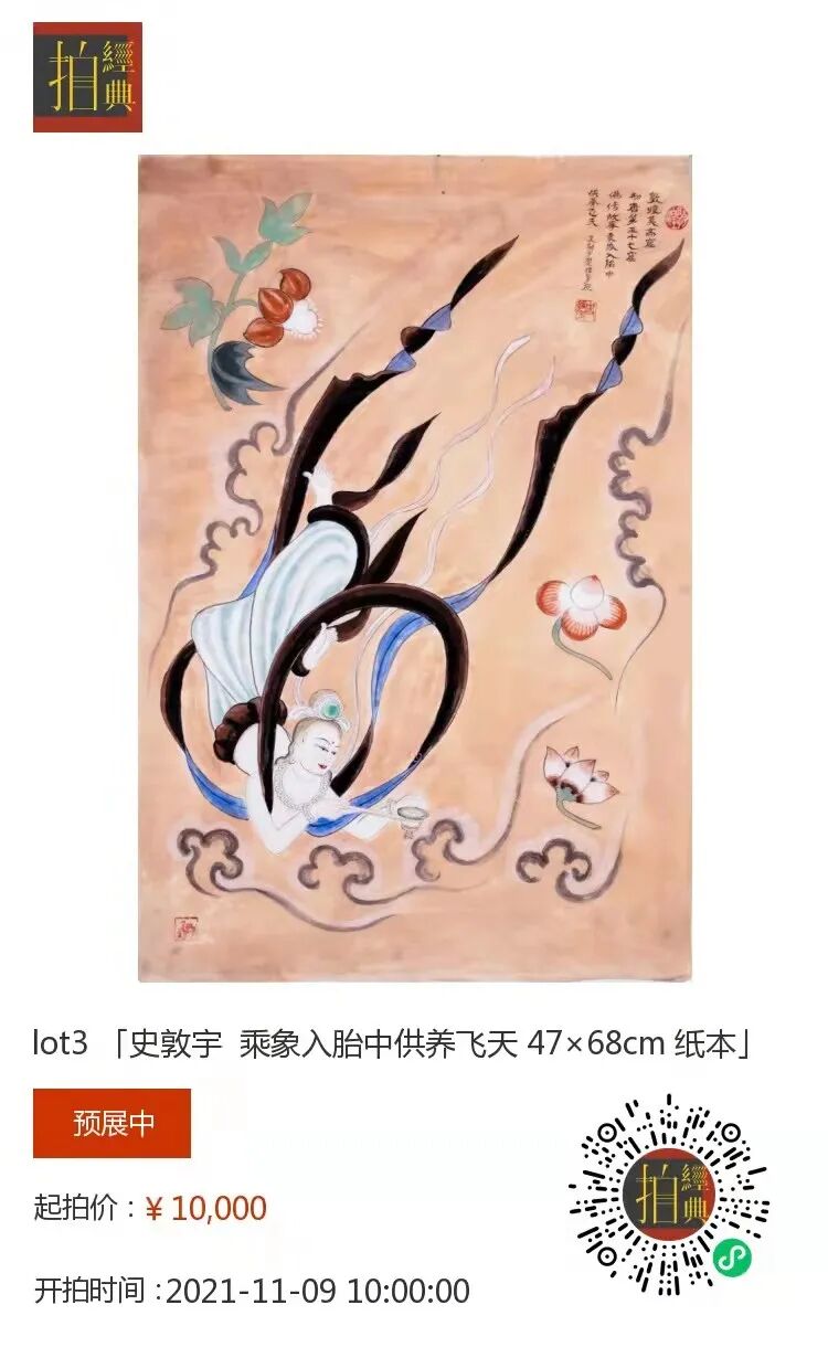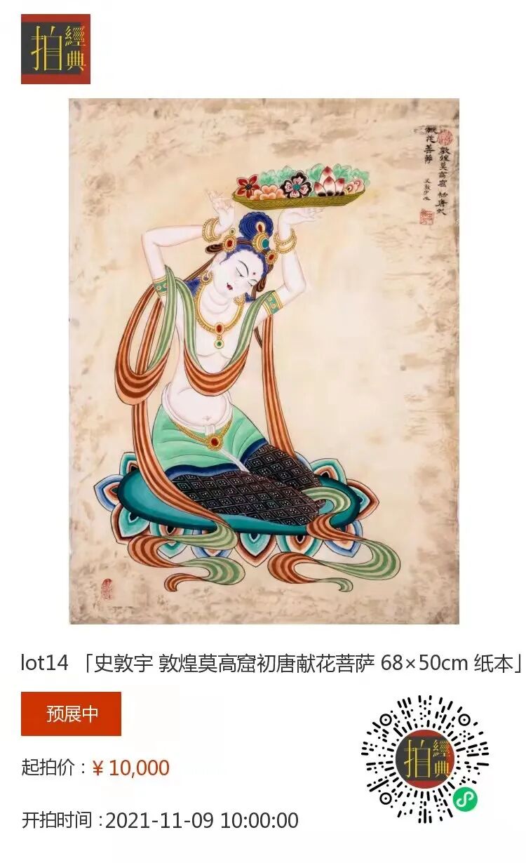 本期【经典拍】特别推出“丝路敦煌——史敦宇敦煌壁画复原作品”专场,共甄选史敦宇老师20幅精品佳作,画种包括飞天、舞乐、尊像画、故事画等多种题材,以纸本、绢本、布本三种形式绘制,向喜欢敦煌艺术的人们展现真正的敦煌壁画临摹品。本场拍卖佣金所得,将全部捐给南京普光寺,用于助建重修。