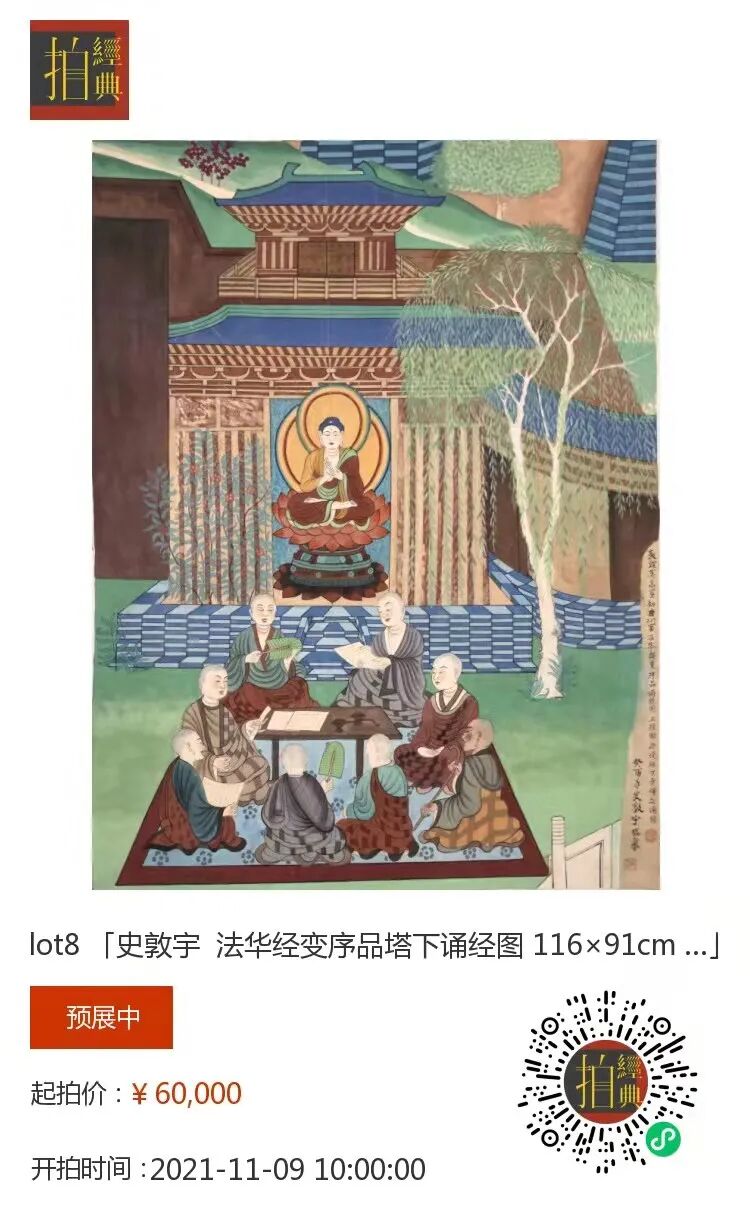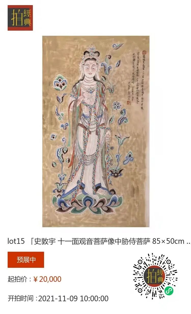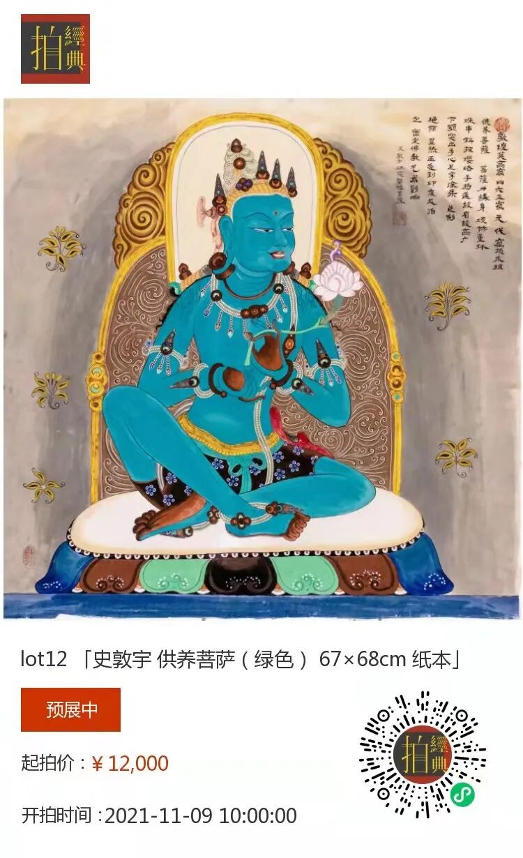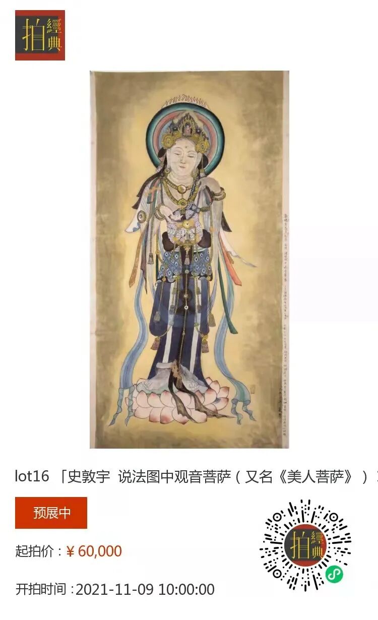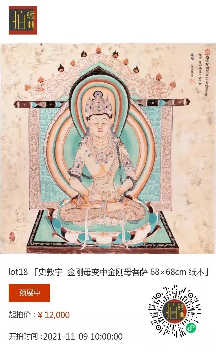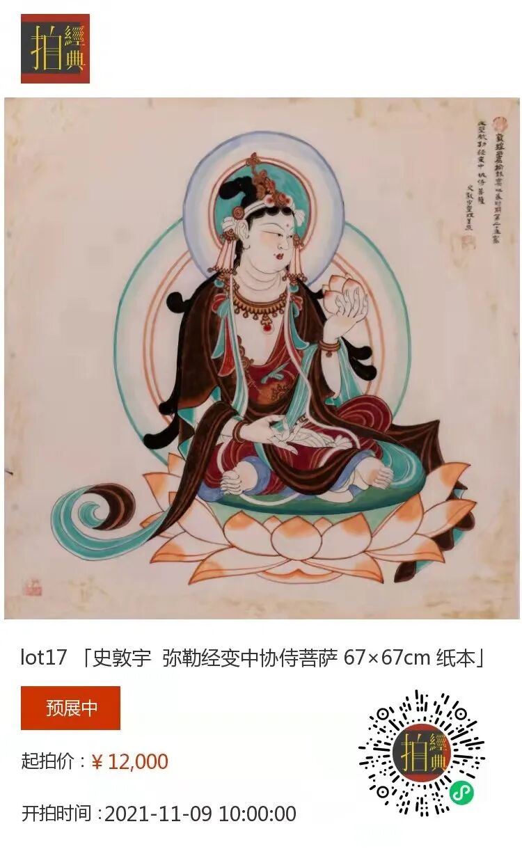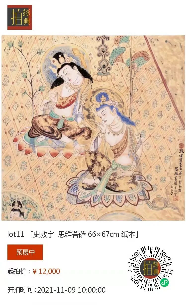 本期【经典拍】特别推出“丝路敦煌——史敦宇敦煌壁画复原作品”专场,共甄选史敦宇老师20幅精品佳作,画种包括飞天、舞乐、尊像画、故事画等多种题材,以纸本、绢本、布本三种形式绘制,向喜欢敦煌艺术的人们展现真正的敦煌壁画临摹品。本场拍卖佣金所得,将全部捐给南京普光寺,用于助建重修。