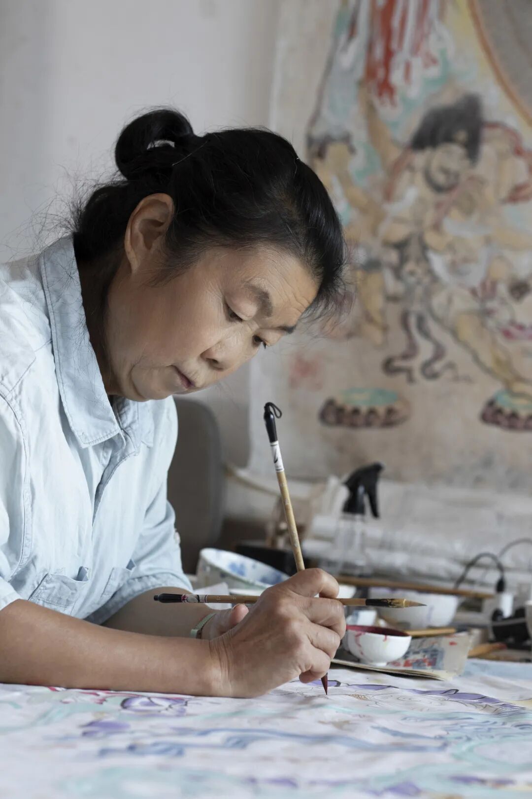 史敦宇1952年出生于敦煌莫高窟,是上世纪40年代来敦煌工作的学者们在莫高窟出生最早的孩子。是时任敦煌文物研究所所长的常书鸿先生为她起名“敦宇”,从此她的名字本身就和敦煌艺术联在了一起。她自幼跟随父母出入洞窟学习临摹敦煌壁画,得到了常书鸿、段文杰等先辈大师的指导。研究临摹复原敦煌壁画三十余年。她临摹复原的敦煌壁画曾在北京、上海、广州、兰州等地展出,1999年受上海佛教协会邀请在上海黄浦大厦举办了 “敦煌艺术个展”并于2005年应邀赴台湾讲学,成功举办敦煌壁画展。2010年受邀在国家大剧院举办“唐风舞韵-史敦宇敦煌壁画复原作品个展”,作品被国家大剧院永久收藏。