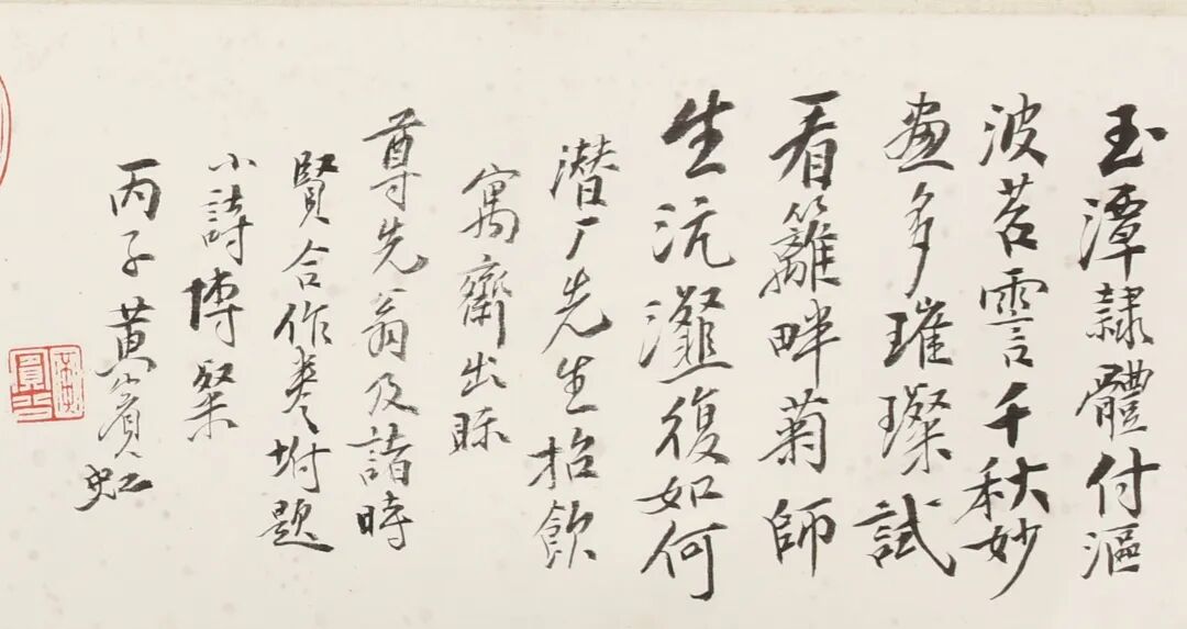 該卷題詠者共計十人,其中引首者為朱益藩,跋尾創作時間從 1935 年暮春開始,至 1941 年初為止,作者九人,依次為:鄭其藻、楊天驥、袁思亮、壽石工、黃賓虹、恩華、陳實銘、巢章甫、許修直。