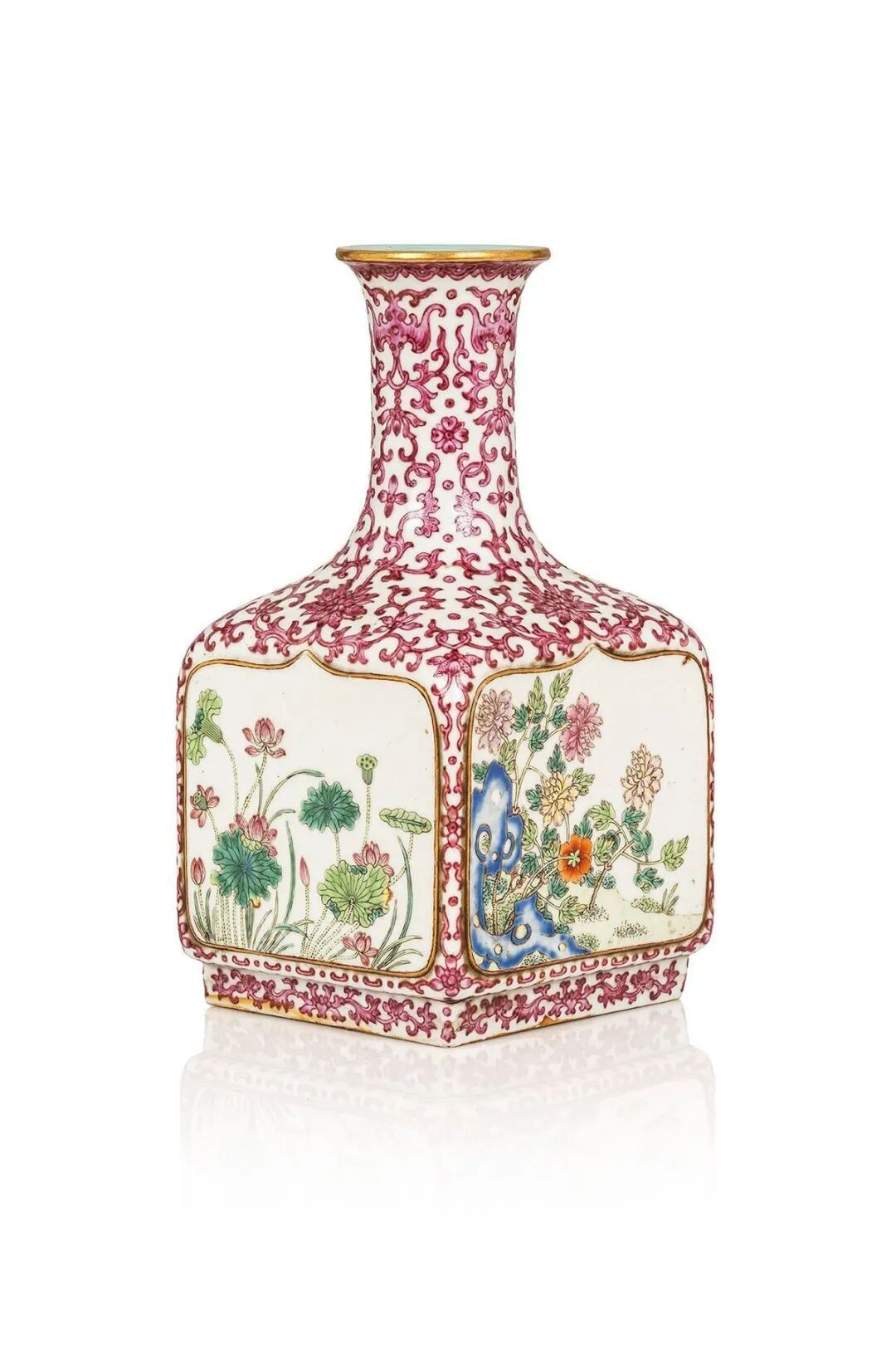 Lot 1218 清光绪 粉彩花鸟纹琮式瓶