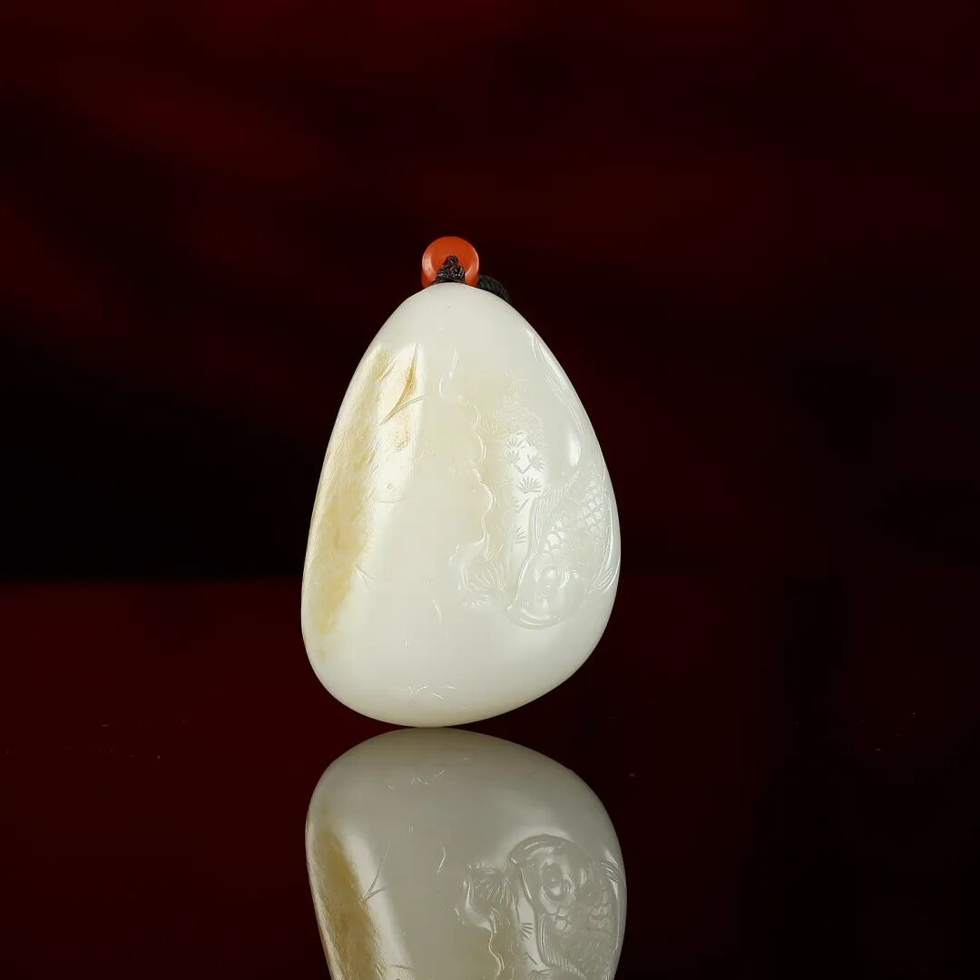 陈春波 洒金皮和田玉籽料连年有余挂件