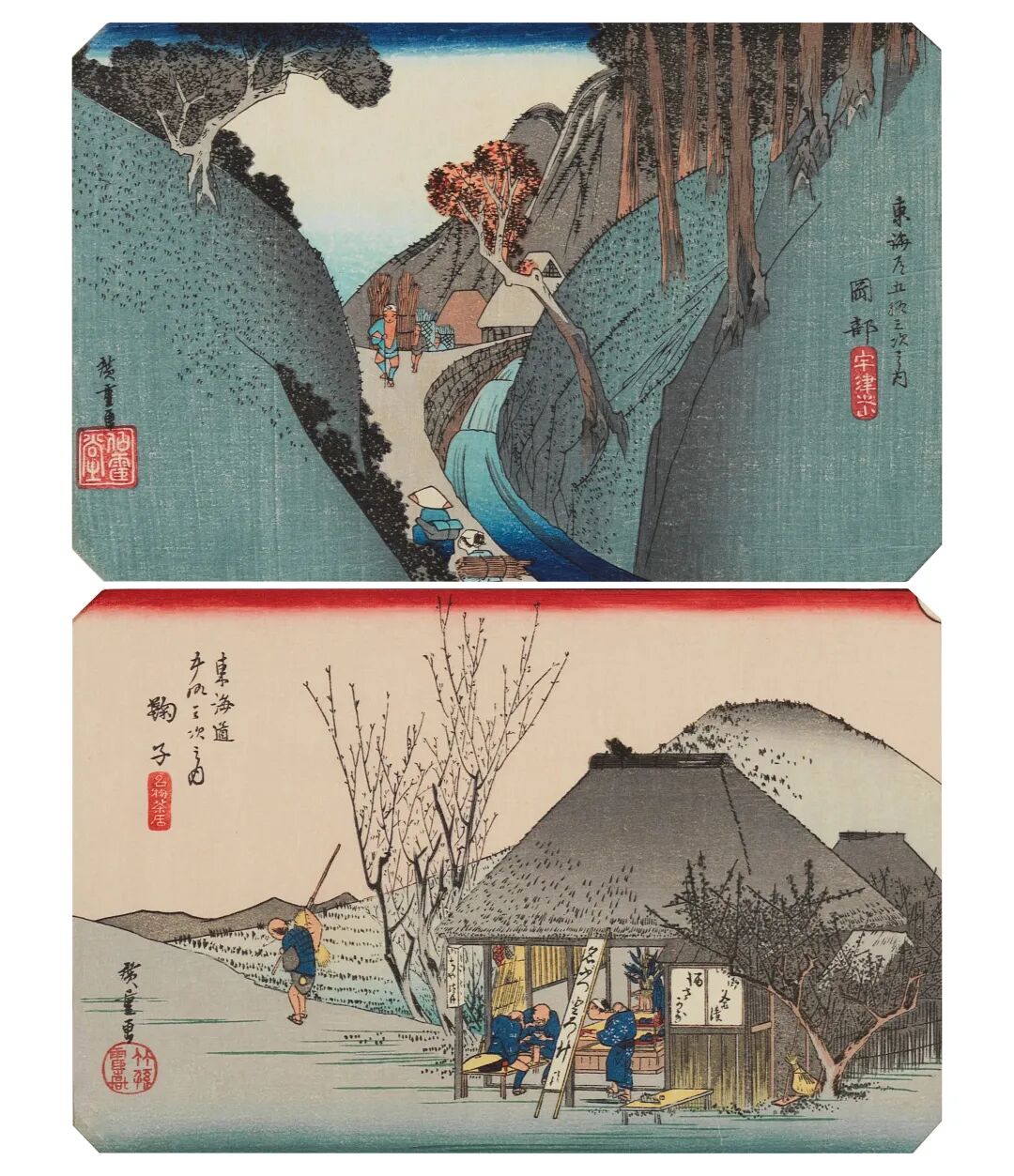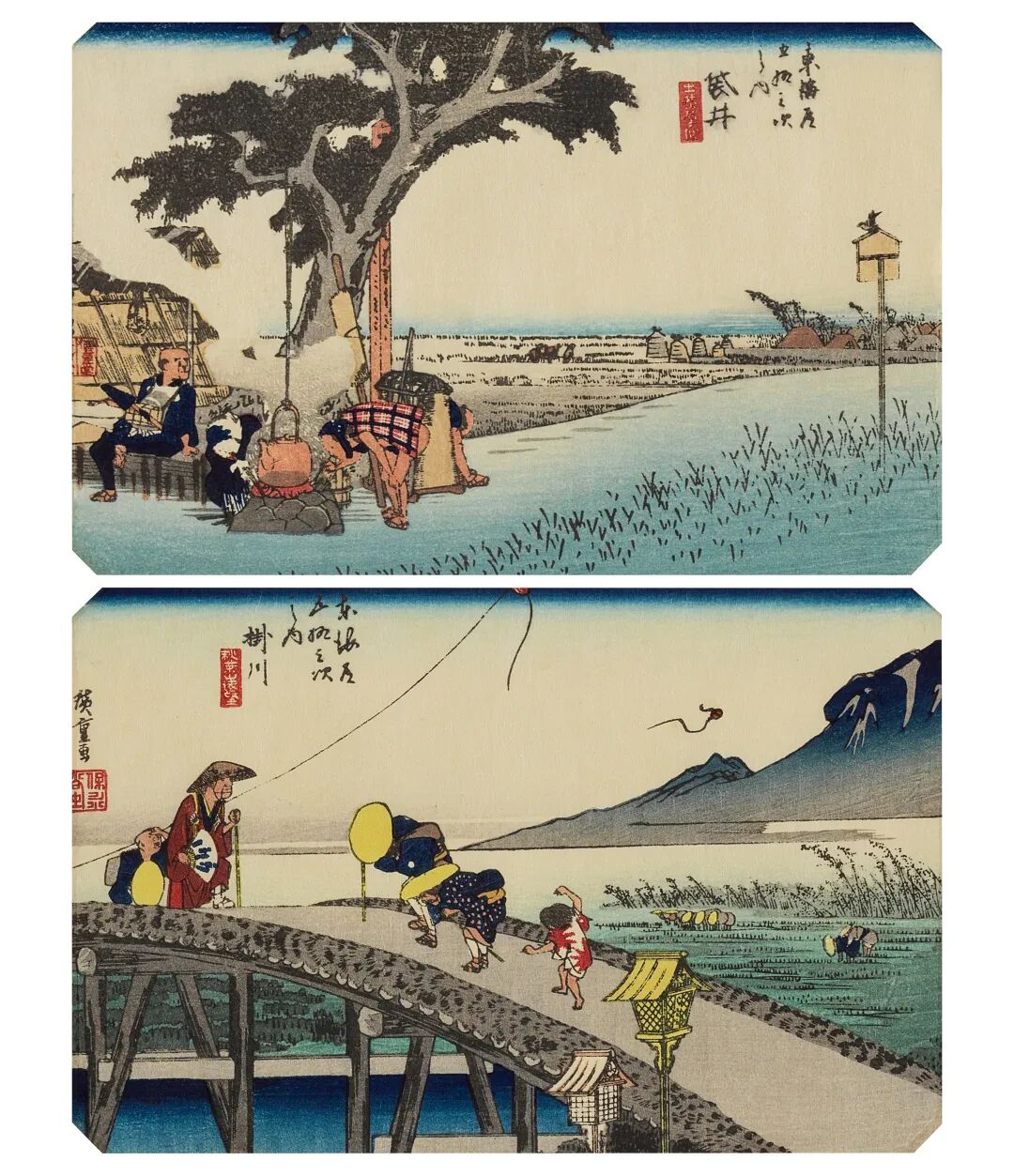 歌川广重 12-1挂川 秋叶山远望 12-2袋井 出茶屋之图