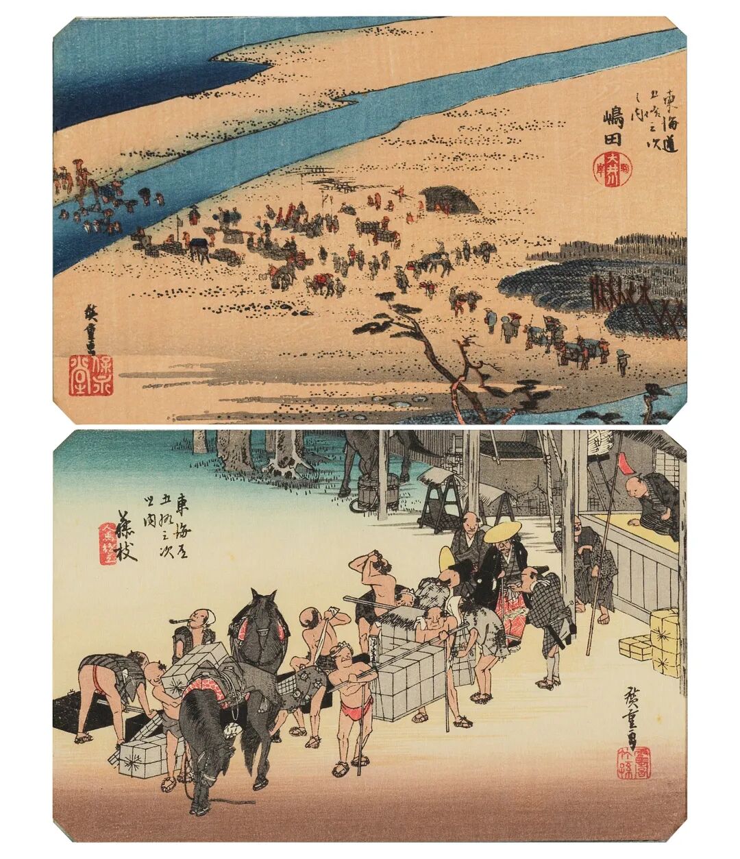 歌川广重 11-1藤枝 人马继立 11-2岛田大林川骏岸