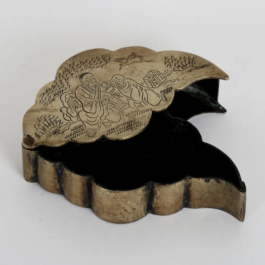 铜如意镇纸、人物纹树叶形墨盒一组