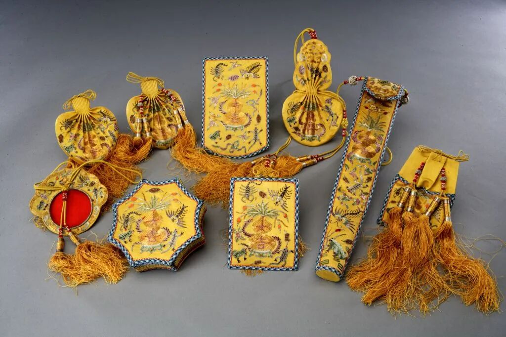 此类器模仿织锦装裱之画作,始制于乾隆晚期,直至嘉靖年间续制于景德镇御窑。百子龙舟图围绕瓶身细绘,环瓶观赏,犹如织锦装裱之卷轴徐徐展开。随着暑气渐强,“五毒”横行,容易出现瘟疫。“五毒”通常指代蛇、蝎子、蜈蚣、壁虎、蟾蜍,古人在注意驱邪避瘟的同时也将这类图案融入到生活用品与艺术创作中。“五毒”常见于荷包、香囊等随身佩戴物之上,也成为书画、瓷绘中的经典题材。此套活计为清宫旧藏,包括荷包、表套、扇套、镜子粉盒等。通体以金线、银线和五彩丝线绣五毒和“大吉”葫芦纹,有着以毒攻毒、驱邪免灾的寓意,实用性和装饰性兼具。此作款题:“小园花色尽堪夸。今岁端阳节在家。却笑老夫无处躲。人皆寻我画虾蟆。李复堂小册画本。”可见是齐白石临摹清代李鱓(号复堂)的作品。以上就是小编想分享给各位的“端午味儿”。至于该说“端午快乐”还是“端午安康”,只要是美好的祝福和祈愿,又有何不可呢?编辑:陈曦 校对:子毅