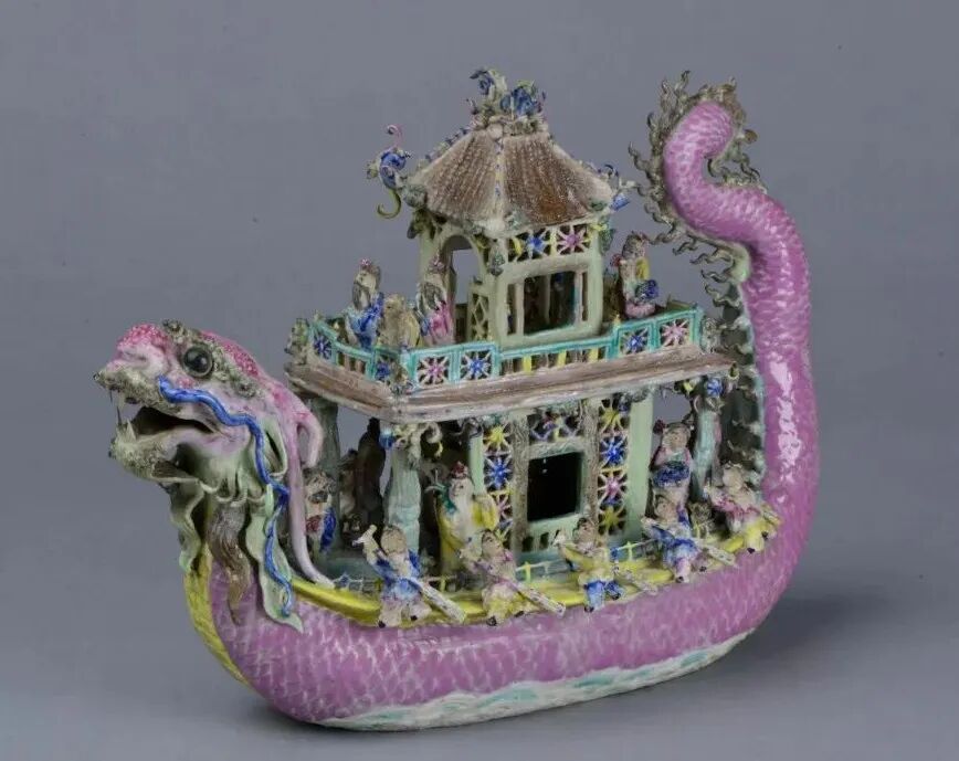 提到赛龙舟,人们通常认为是纪念屈原的民俗活动。其实,龙舟竞渡早在战国之前就已出现,并逐渐从古代的祭祀性活动演变为民间重大的节庆娱乐活动。针对这一精彩刺激的水上竞技盛事,官方和民间都极为重视,此题材也在历朝历代的绘画、陶瓷中多有出现。![]()