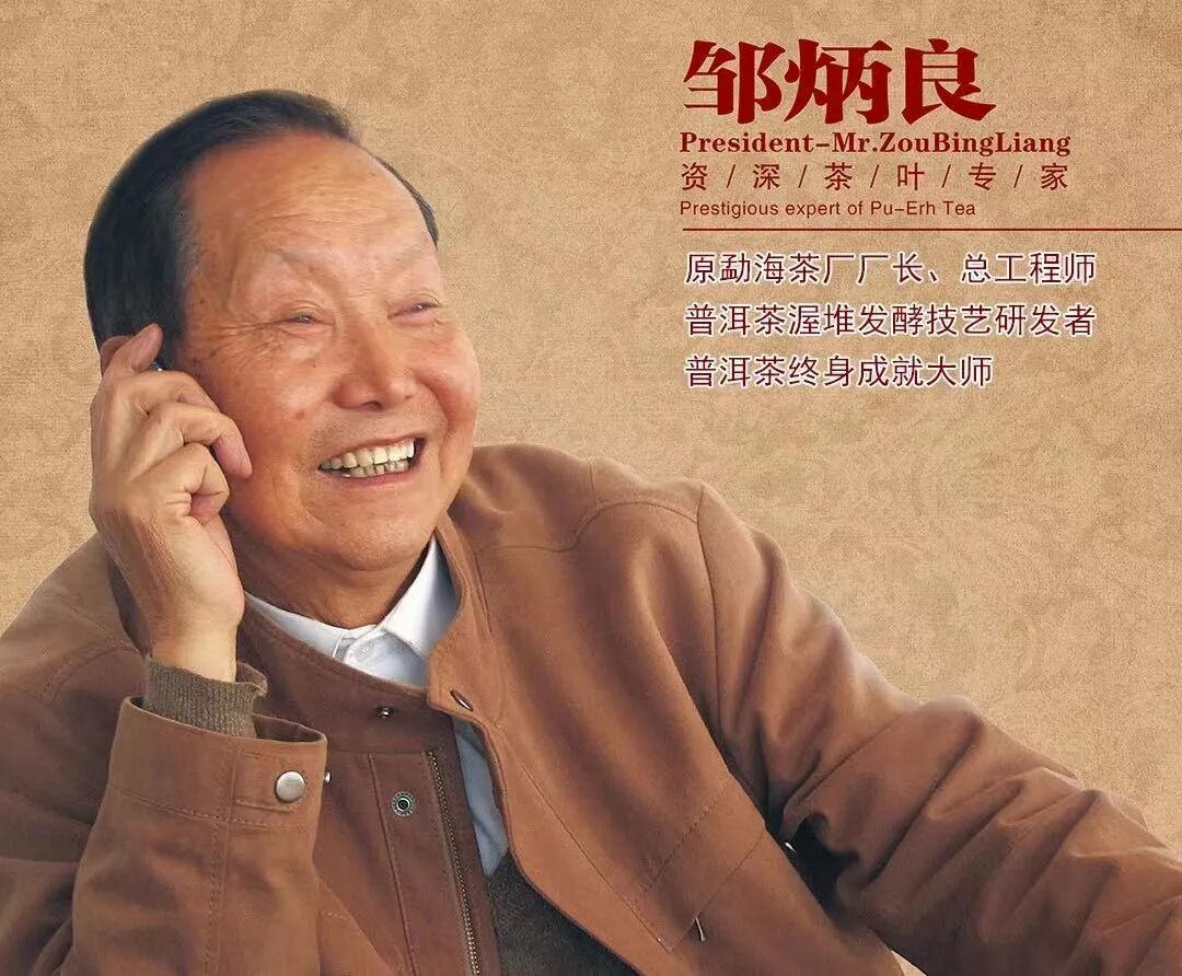 邹炳良先生被尊称为“普洱熟茶渥堆技术的创始人”、“普洱熟茶之父”。被授予“中国普洱茶终身成就大师”荣誉称号。他撰写的《普洱茶工艺》是世界上第一套关于普洱茶生产、加工工艺和操作规程的专业教材,结束了普洱茶没有科学标准鉴定的历史。