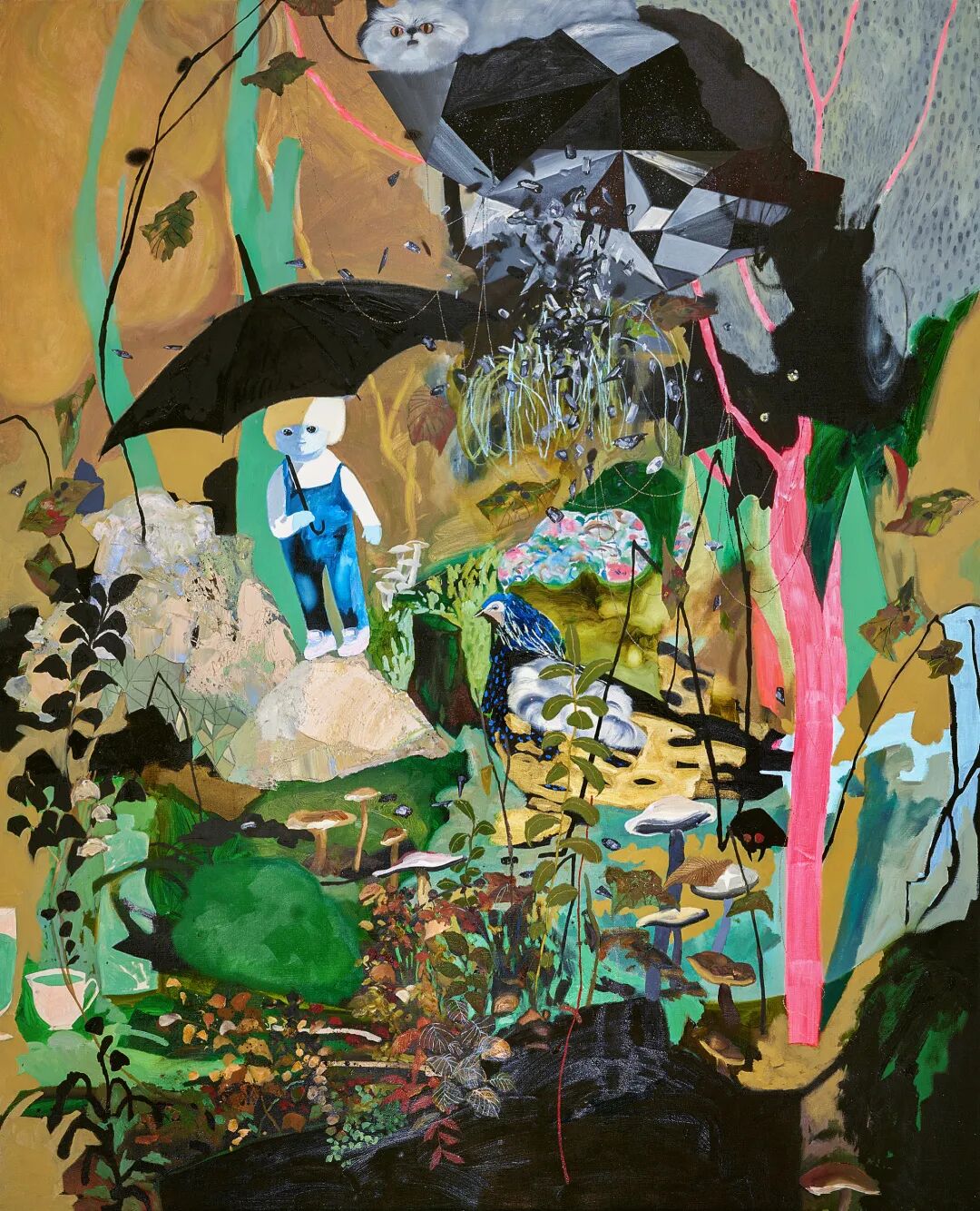 《空心月球的假設》是松山智一標誌性的異形繪畫,優美流暢的線條構成的作品輪廓呼應著熠熠生輝的畫面,為觀者帶來歡快綺麗的視覺感受。正如松山智一繪畫中特有的「將時空之間大量元素提取並重構」的「拼湊式」圖像內容,完整體現出藝術家將日本傳統文化與西方觀念的交融。