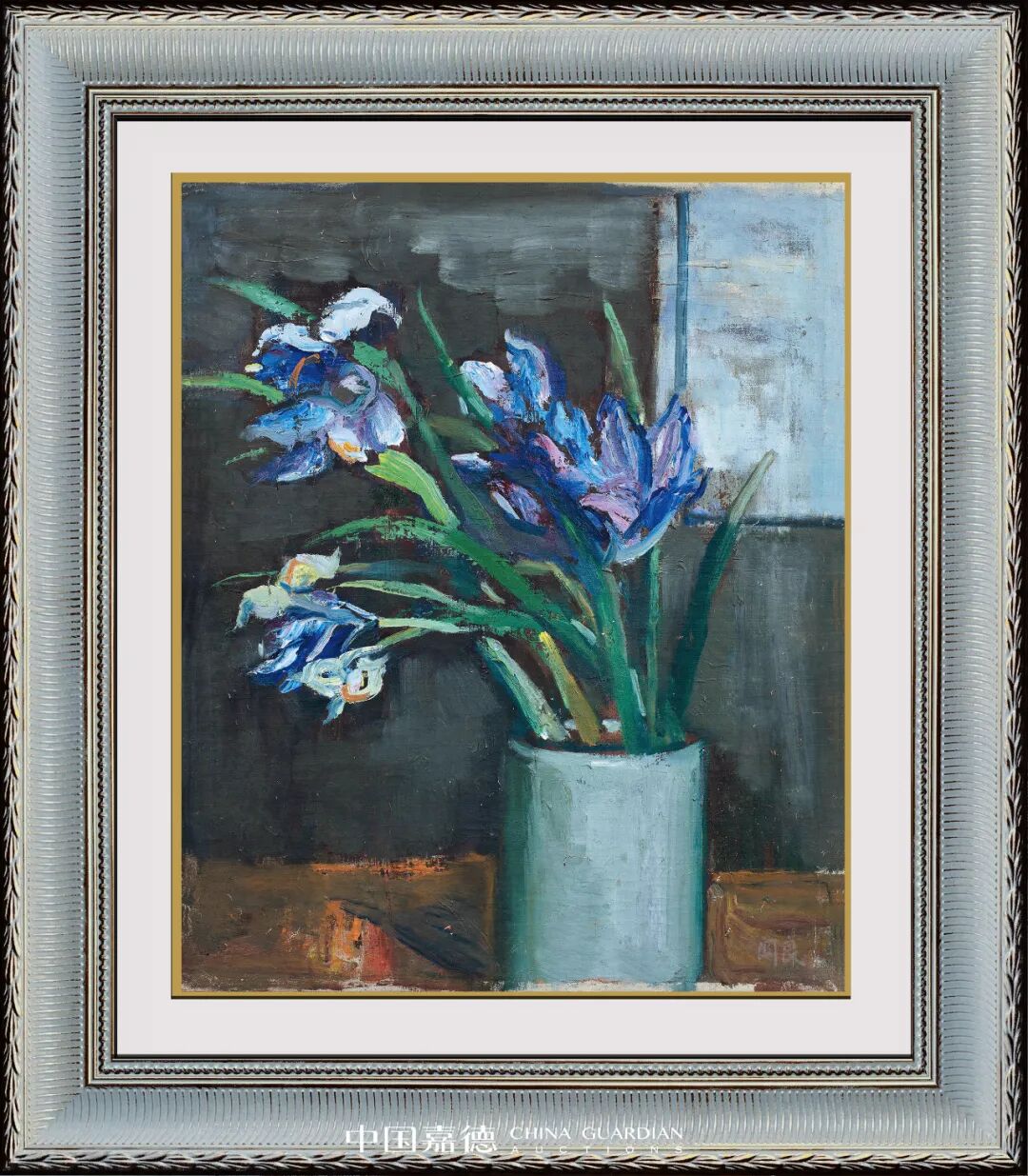 关良的作品既有西方绘画的单纯与粗犷,又体现出中国绘画的平淡洒脱。本场呈现的《鸢尾花》是关良绘画中前较少见诸市场的花卉题材,尤显珍贵。关良吸收了塞尚静物写生的特点,用较大的笔触整体地对元素进行处理,呈现出空间上的张力。而缤纷丰富的色彩在绿叶的映衬下显得鲜活亮丽,朴拙而耐人寻味。作为关良晚年花卉的代表性作品,该作早期出自家属收藏,并发表于上海人民美术出版社出版的《关良》画册中,可谓来源明确、传承有序。