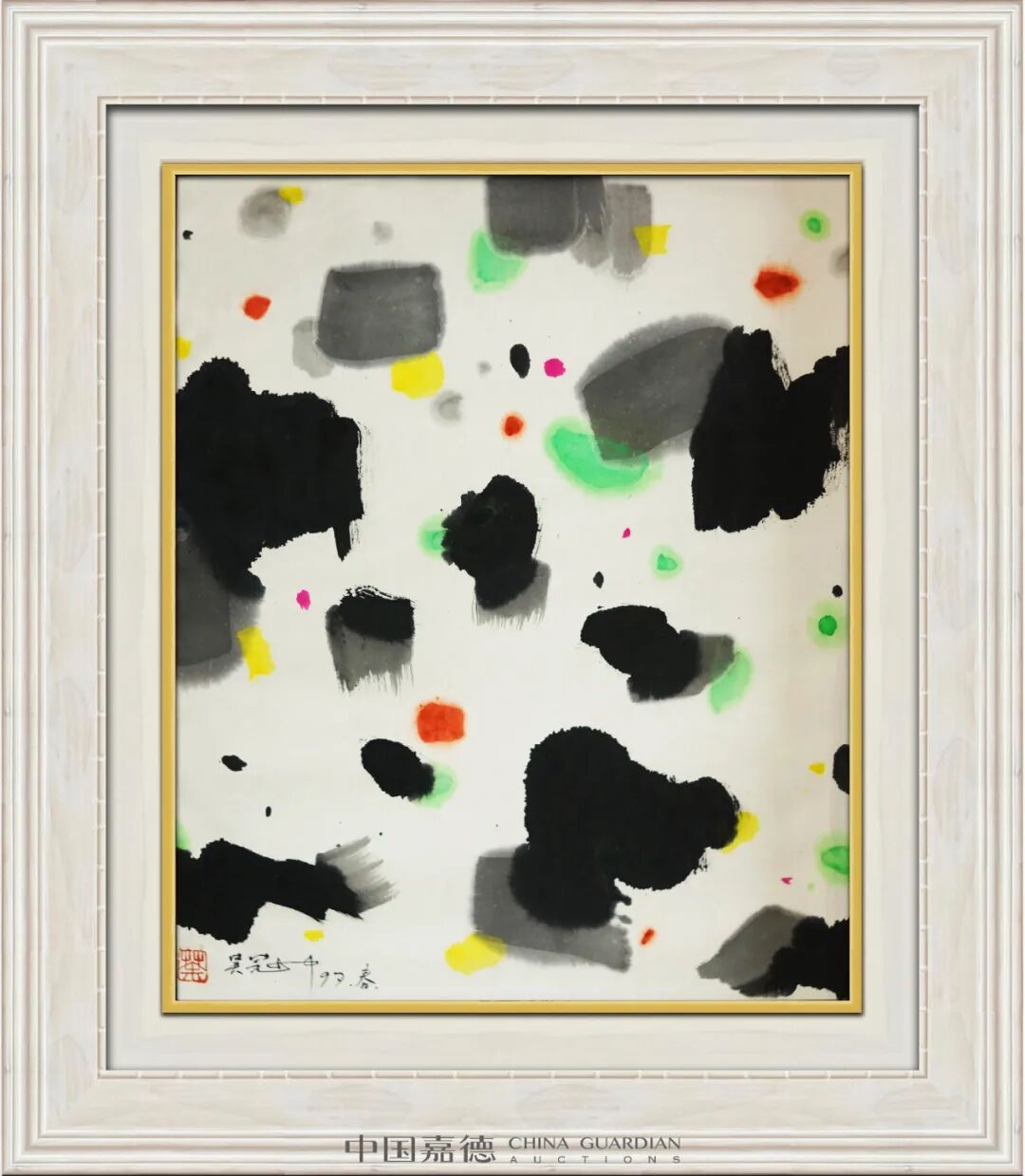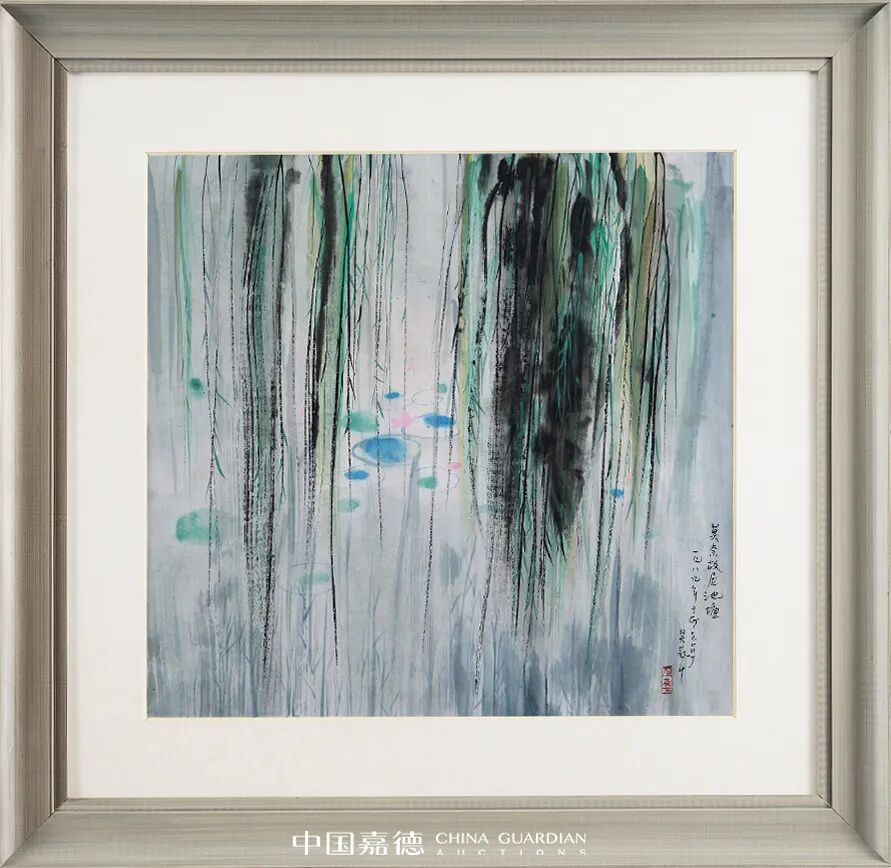 吴冠中作为20世纪现代中国绘画的代表画家之一,终生致力于油画民族化及中国画现代化之探索。本季《莫奈故居池塘》和《春在》均属其中西融化画风步入巅峰的80-90年代作品,展现了吴冠中水陆兼程,却又风筝不断线的经典形式美感。《莫奈故居池塘》中,艺术家以纯粹化的点、线、面关系,跨越了自然、人文景观而形成了独立自在的心灵景观,近乎抽象的水墨情韵,预示了吴冠中于90年代拼尽全力在“形式上走向抽象,精神上走向崇高”的生涯最重要突破。