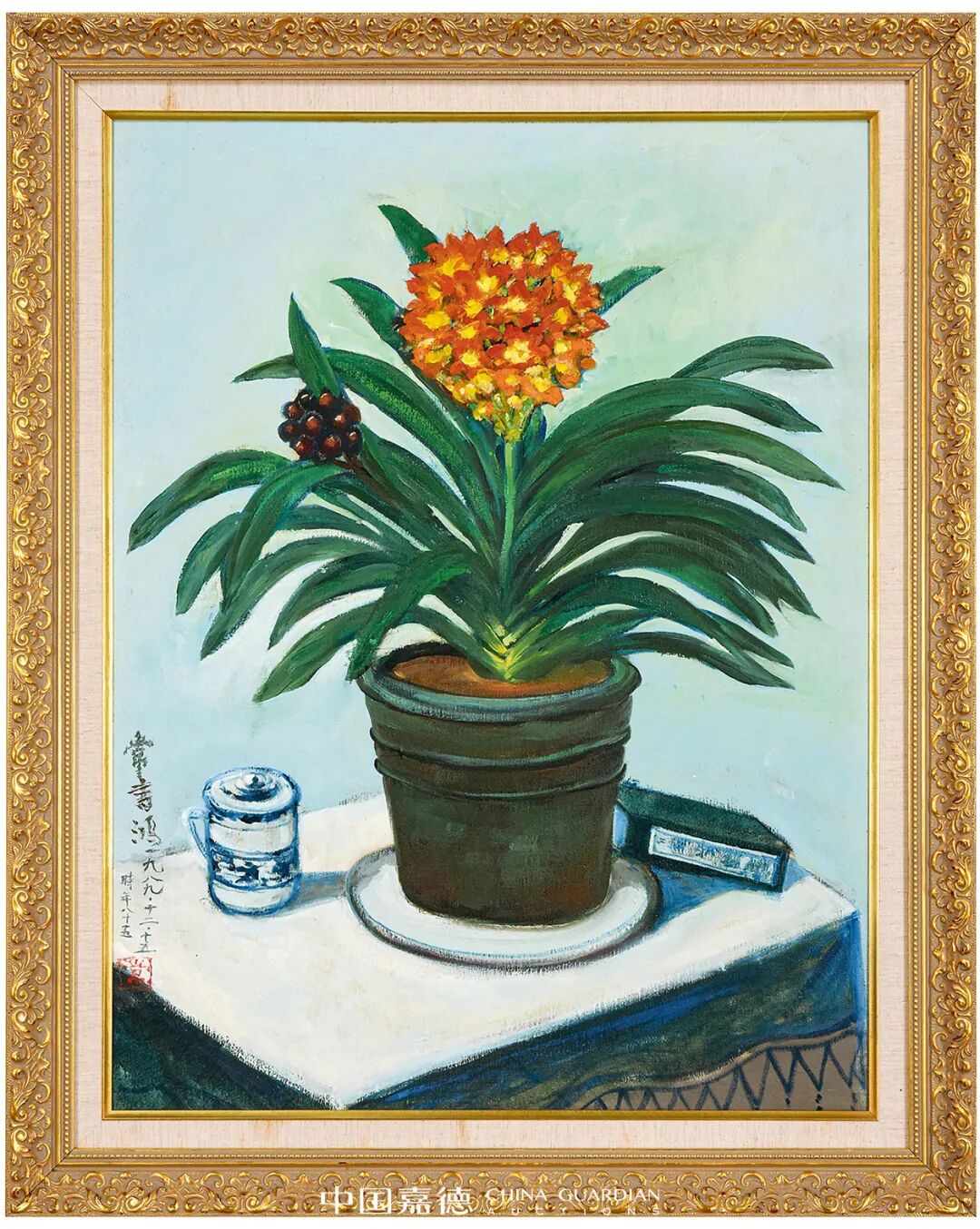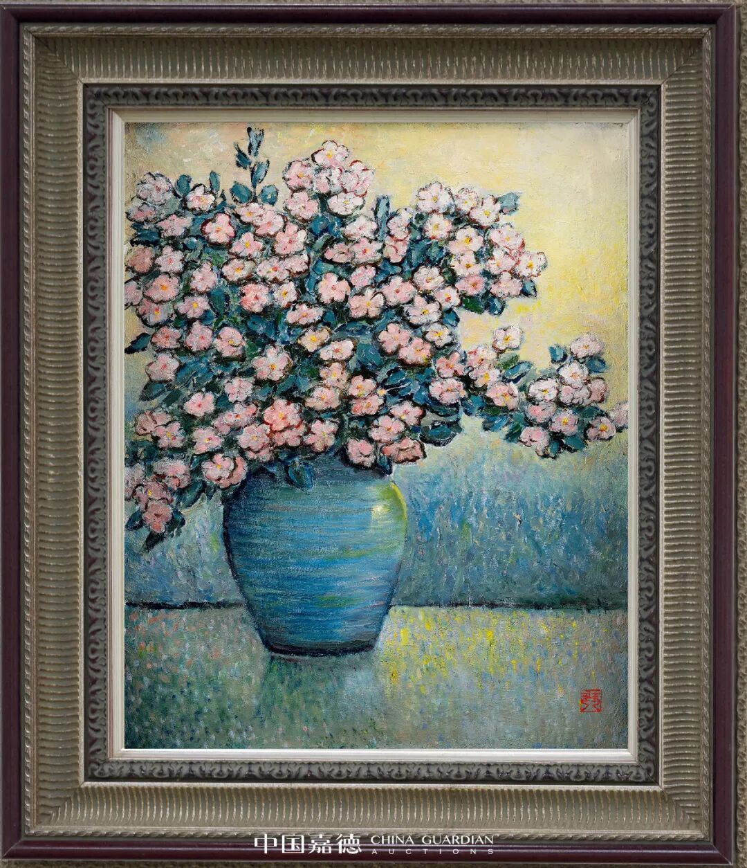 提起常书鸿,更多的人知道他是研究敦煌艺术的专家,然而在敦煌的研究与保护之外,常书鸿的油画在近现代中国油画史上,同样有着无可争辩的地位。《阅尽人间春色》便是常书鸿静物油画中不可多得的代表,其笔下的“大漠之花”,在浓烈的笔触及色彩之下闪耀着敦煌艺术的民族精魂。相比常书鸿其他花卉作品,本作在色彩和笔力上尽显雄风,展现出纷华不染之高雅气质,粲然如繁星丽天。而本作也是艺术家赠给其子的留念之作,铭记了一位父亲对子辈的美好祝愿,以及对即将到来的时代曙光的期盼。本作来源凿凿、大方端丽。又鉴于目前市场中能流通的常氏油画寥寥,精品更是罕见,也令这件花卉更显珍贵。