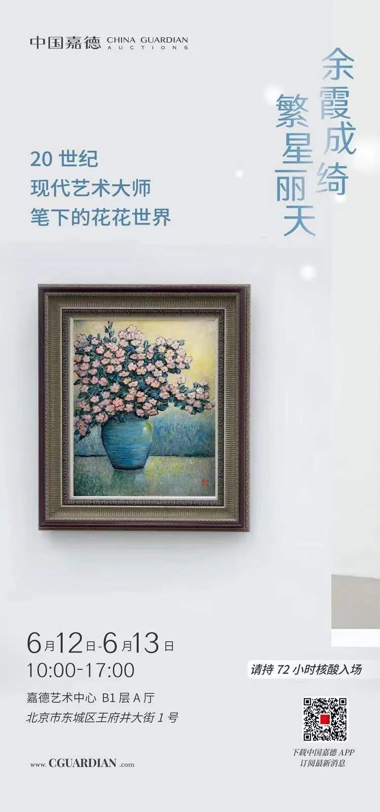 “余霞成绮|繁星丽天——20世纪现代艺术大师笔下的花花世界”特展将于6月12日-13日在嘉德艺术中心B1层A厅惊艳现身。本次展览将集中呈现10件稀有级的现代主义名家花卉题材创作,件件精典,美若余霞成绮,粲然如繁星丽天。更有丁衍庸、常书鸿、庞薰琹、苏天赐、藤田嗣治之多件作品为藏家珍藏多年后的首次释出,堪为希世之珍。