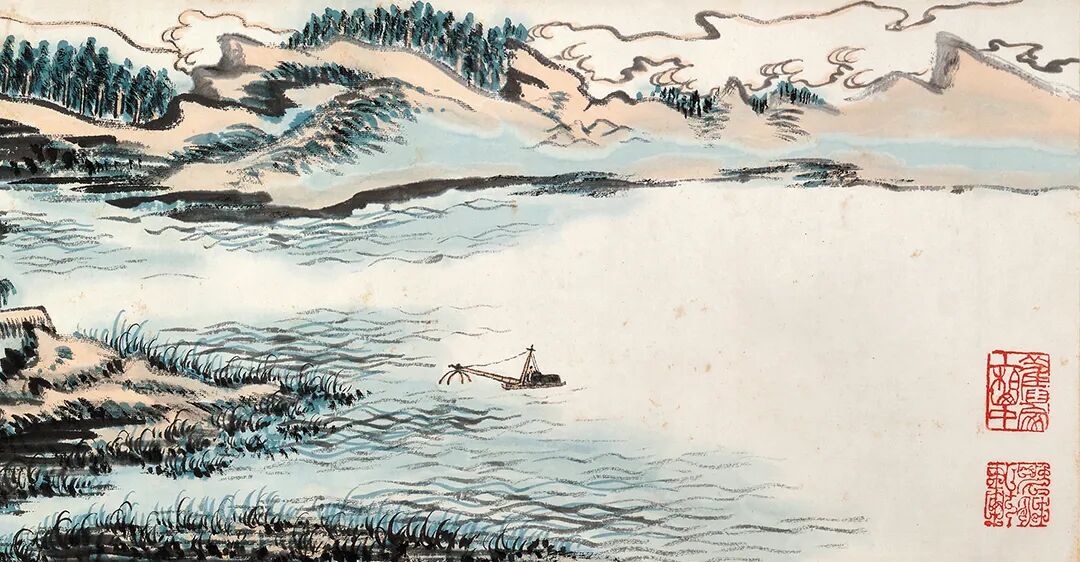 释文:蓝水远从千涧落,玉山高并两峰寒。