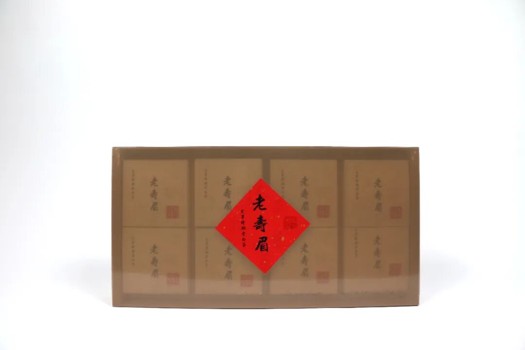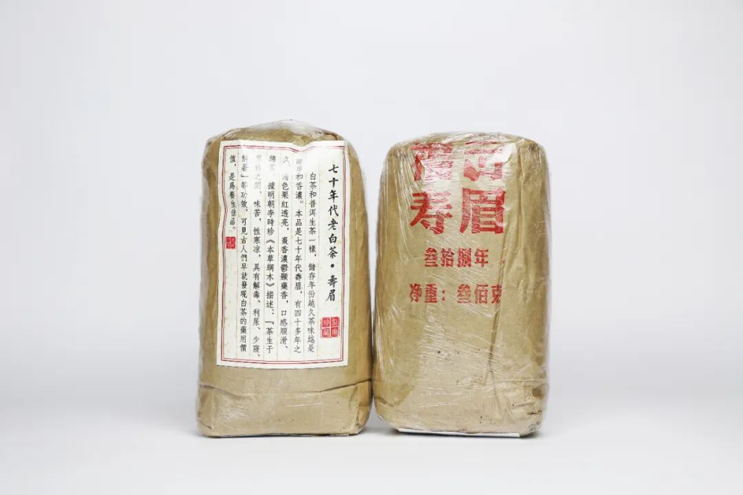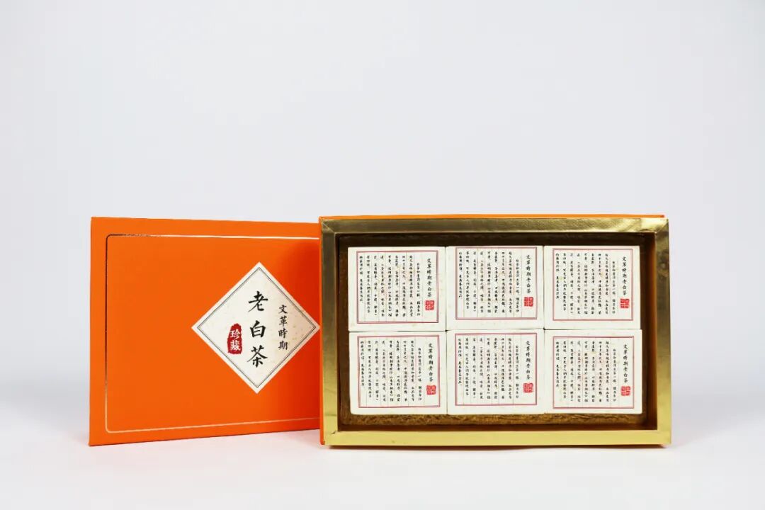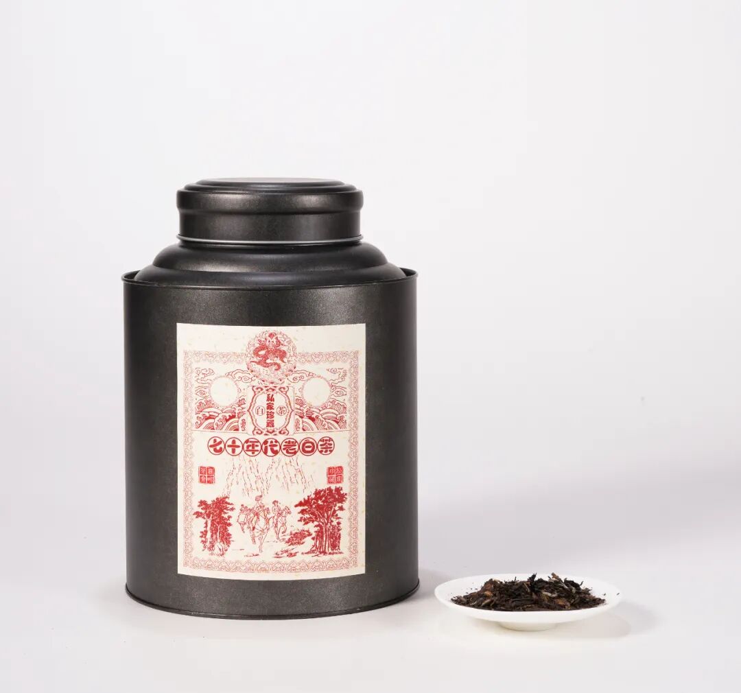 此款老白茶,为60年代末期至70年代初期产品,老茶新包装。其存量稀少,经五十余年陈化,寒性完全褪去,茶性温和,茶汤呈酒红色,甘甜厚滑,杯底药香馥郁,煮后药香更显,具有极高的品饮价值。