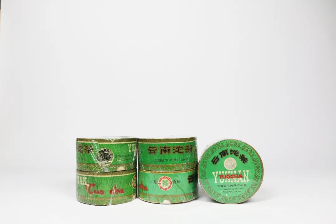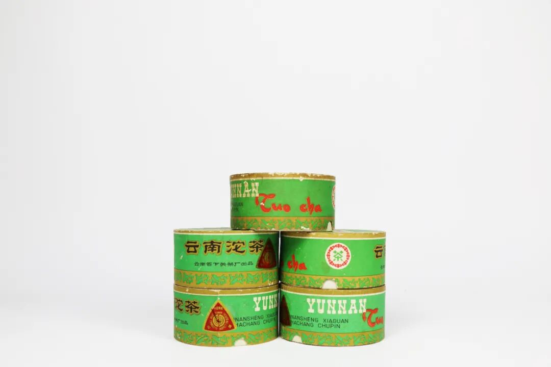 八十年代下关甲级沱,是下关茶厂于80年代生产的一批100克高品质沱茶。它延续销法沱的经典风格,选料高级制作精良。整体包装延续70年代销法沱风格,绿色花格的圆盒上印有“中茶牌”商标、“云南沱茶”等中英字样,侧面上贴有一枚醒目的黑色圆形封签、印有“中国商检”字样,业内也称为“黑标商检沱”。