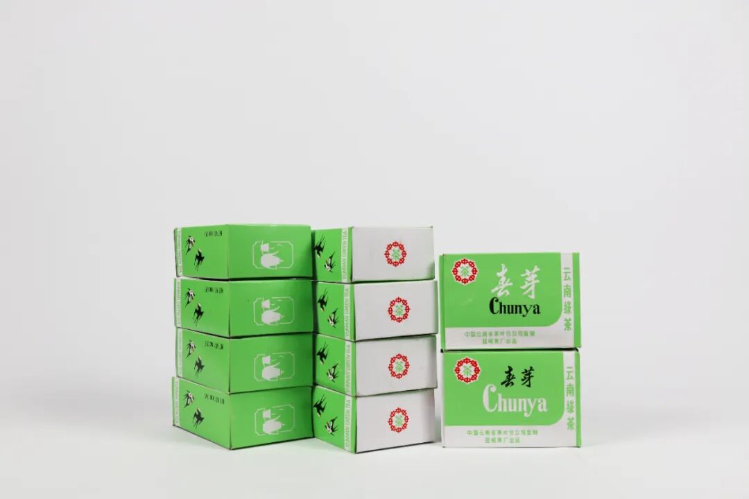此茶是昆明茶厂92年出口欧洲的一款盒装散茶,其条索壮实,芽头嫩度非常高,汤色橙黄透亮,香气清雅醇厚,回甘生津明显。由于包装盒上绘有两只飞舞的燕子,因此也俗称“燕子茶”。由于早期出口欧洲等地,人们对普洱生茶这一茶品概念比较陌生,因此将这款茶命名为“云南绿茶”。