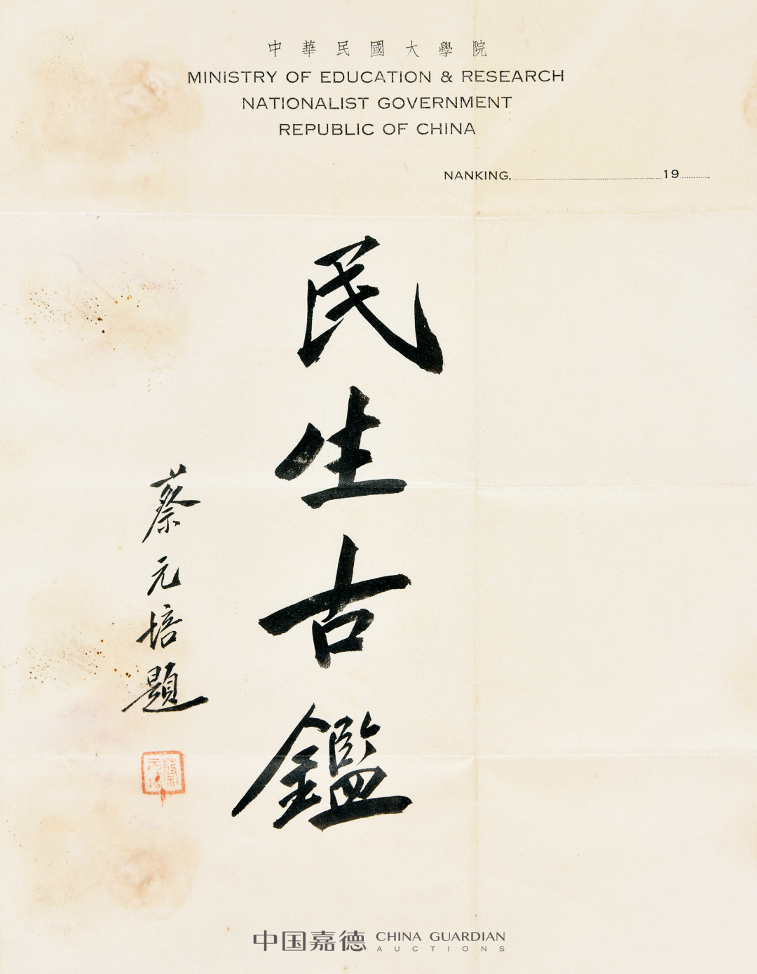 开创者和奠基人之一周仁致瞿宣颖函1通1页附1封,信中言明蔡元培题词“民生古鉴”的由来,全因开会,无暇为《汉代风俗制度史》作长文序言,“只得择题数字以代”。![]()