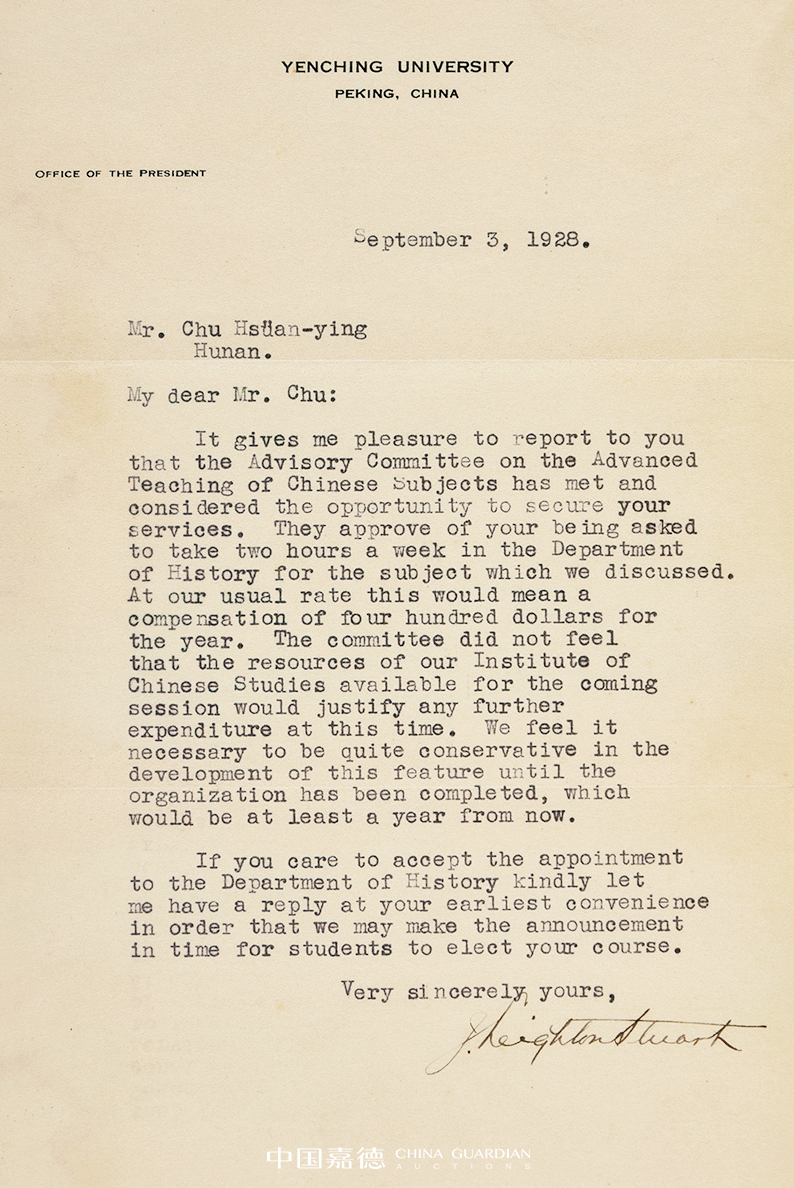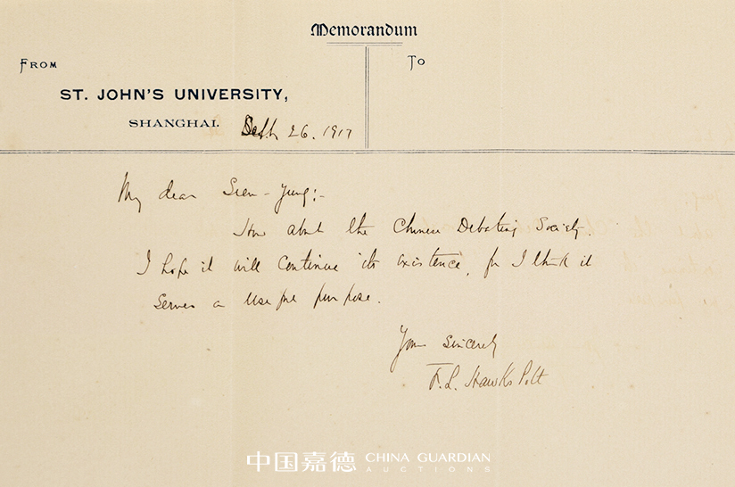内含司徒雷登(John Leighton Stuart)函1通1页,圣约翰大学校长卜舫济(Francis