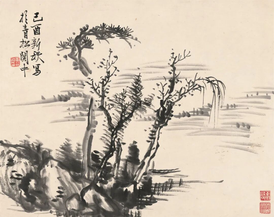 黄宾虹(1865~1955) 为张大千作 渴笔山水