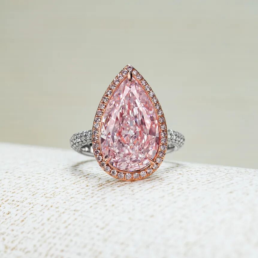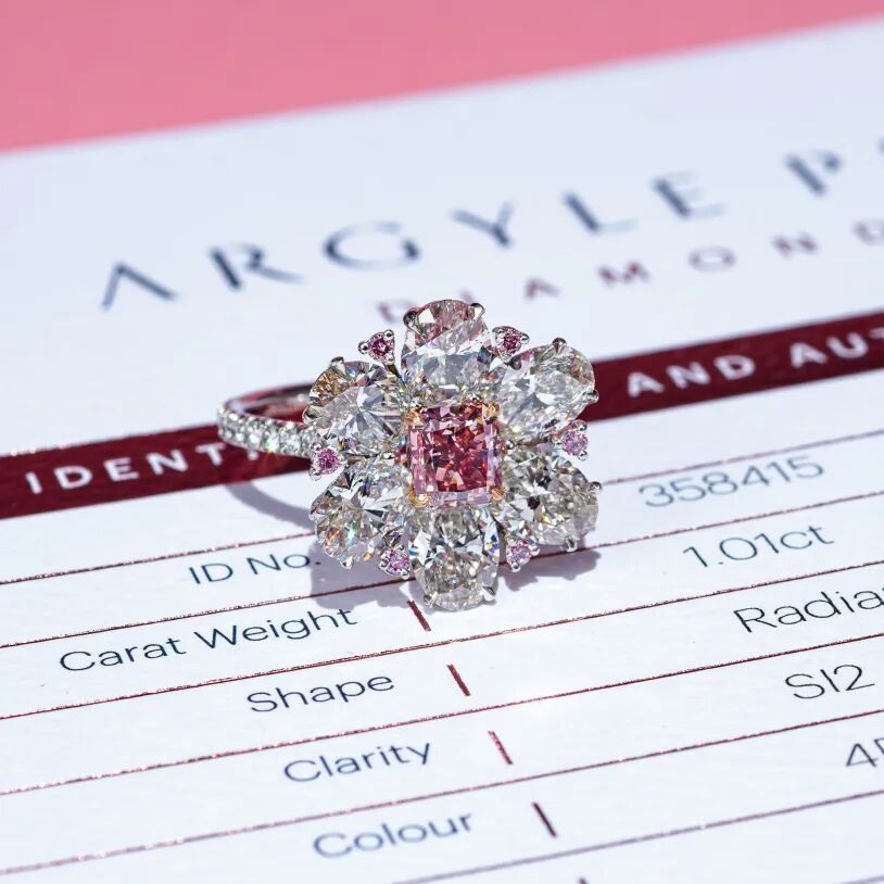 1.01 克拉深彩粉色鑽石配鑽石戒指