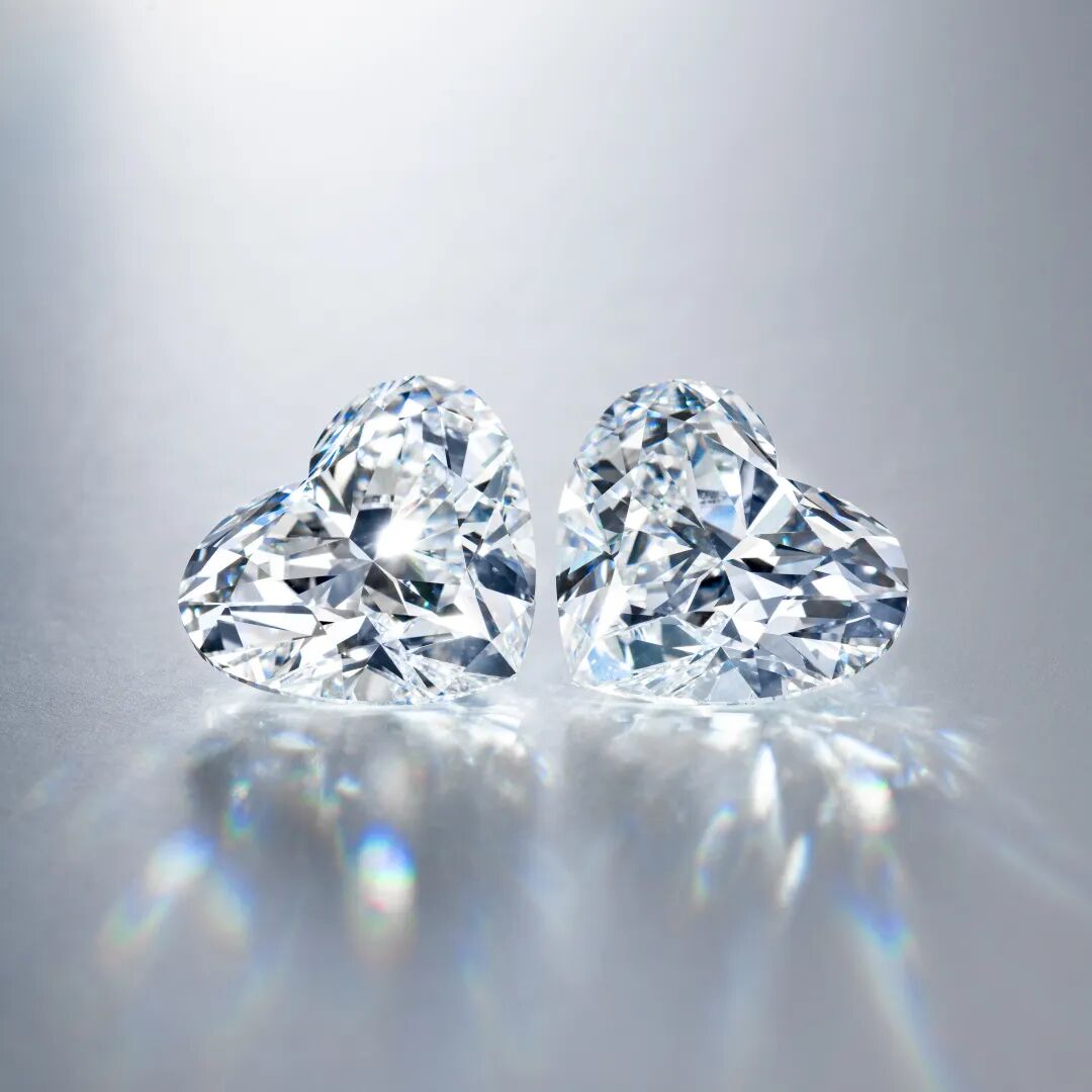 心形鑽石的歷史極為悠久,早在 1463 年,心形鑽石就已經在意大利貴族之間流傳欣賞。如今,心形鑽石因其甜美的形狀和浪漫的寓意受到愈來愈多的追捧。這對 15.78 及 15.77 克拉 D 色內部無瑕的 IIa 型心形白鑽,可謂是世間最為純淨之心。其對稱和打磨都分別達到了極優級別,火彩悅動,寶光四射。非但如此,兩顆心不論顏色,淨度,切割相似度都極高,彼此心心相印,為收藏級別白鑽中最可遇不可求的一對。