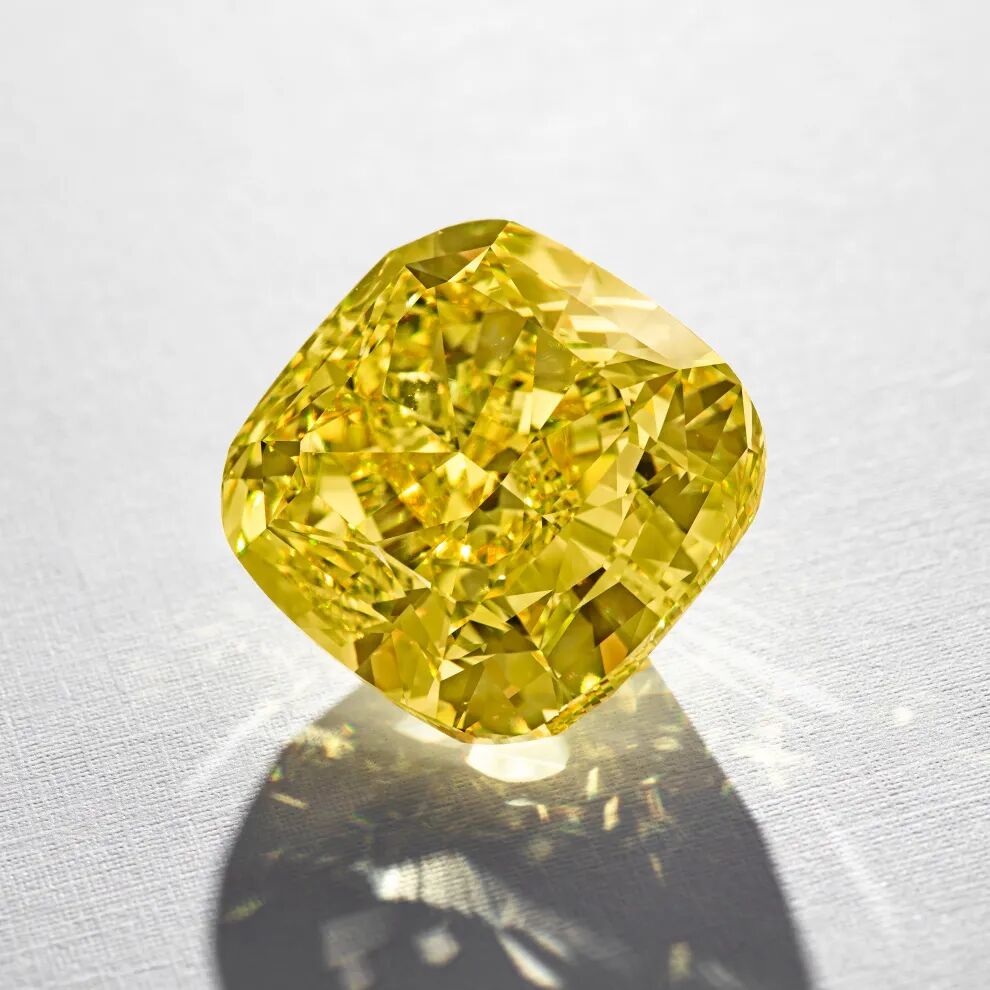 而本次拍賣所呈現的這枚彌足珍貴的黃鑽,天然的璀璨黃色均勻地分佈於枕形切割鑽石的表面,瑰麗不凡。不僅有著「鮮豔黃色」的色彩評級,更有著 74.48 克拉驚人的重量。如此大克拉的鑽石,達到了內部無瑕的淨度,絕對是鑽石收藏家們不可或缺的珍藏。當鑽石呈現在眼前時,我們可以慢慢欣賞它的精心切割,鑽石無以倫比的光學性能被完全釋放,反射周圍所有角度的色彩和光芒,亮度奪目,火彩明媚,充滿活力和生命力。
